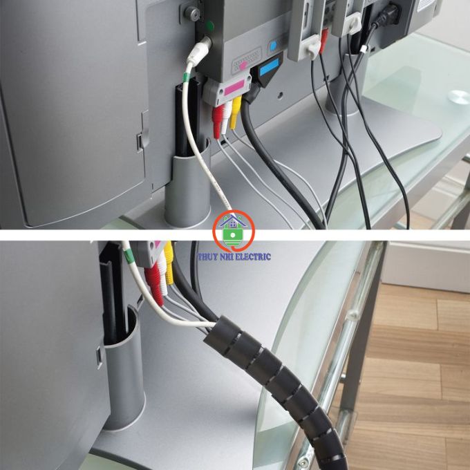 Ở những vị trí có nhiều dây điện nằm chằng chịt gần nhau như dưới bàn máy tính, phòng khách thì cách đơn giản nhất là sử dùng ống luồn khớp. Thiết bị luồn dây điện này giúp tất cả dây được bó gọn gàng và cũng rất dễ dàng mở ra khi cần thêm hoặc tháo ra bất cứ lúc nào