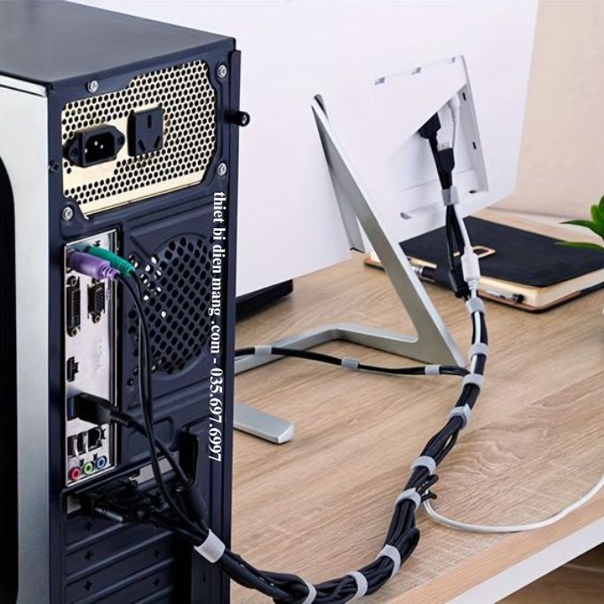 Một cách giúp dây điện được gọn gàng mà tiết kiệm chi phí nhất đó là dùng băng dính gai (Velcro). Chúng giữ cho bàn làm việc của bạn luôn sạch sẽ, các dây cáp được bó lại gọn gàng, có tổ chức. Dán xé 2 mặt giúp bạn dễ dàng sử dụng và gỡ ra bất cứ lúc nào. Băng dính tiện lợi có thể sử dụng cho nhiều kích thước khác nhau từ dây sạc, bàn phím, cáp USB và các loại dây cáp mạng có kích thước lớn.