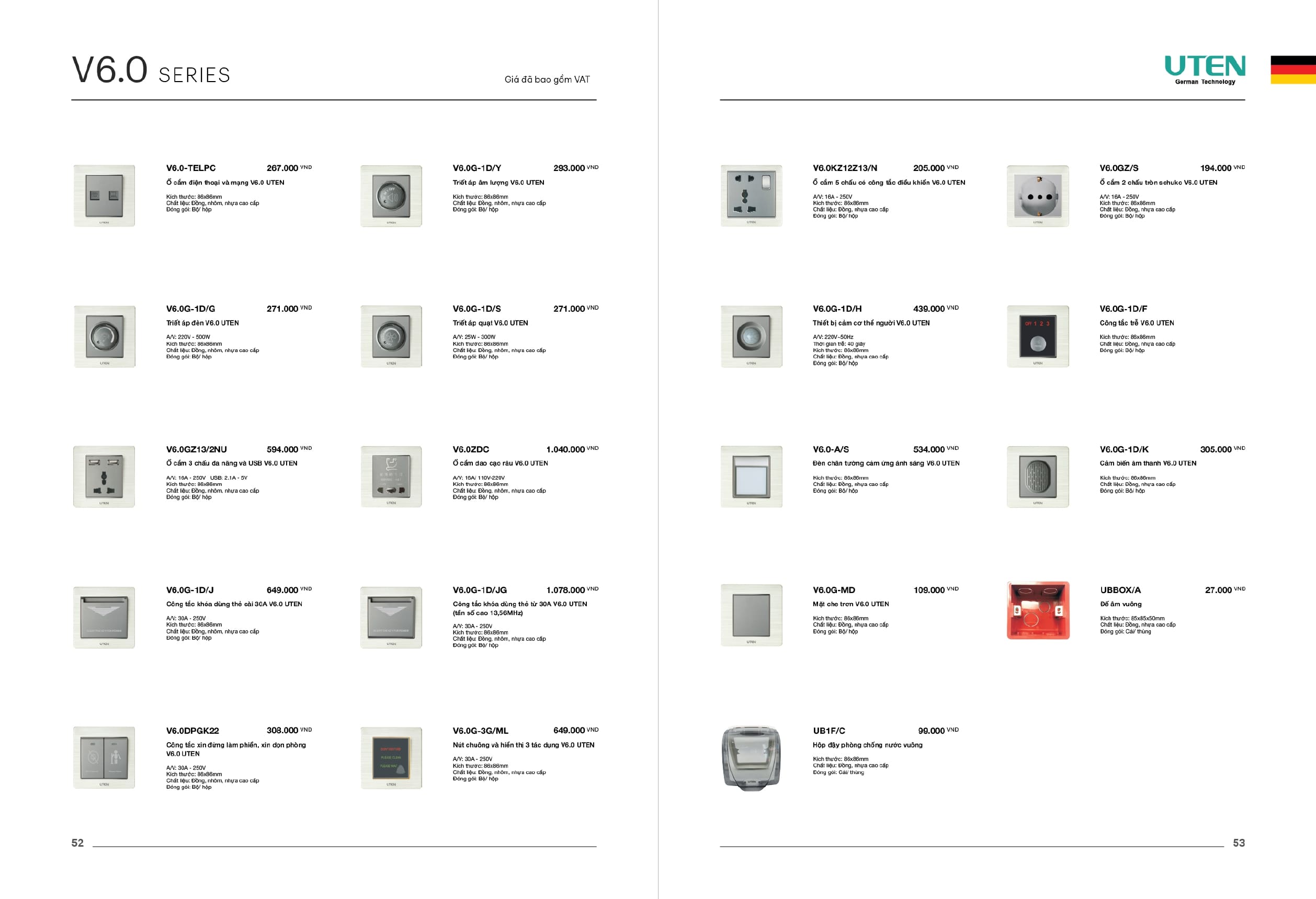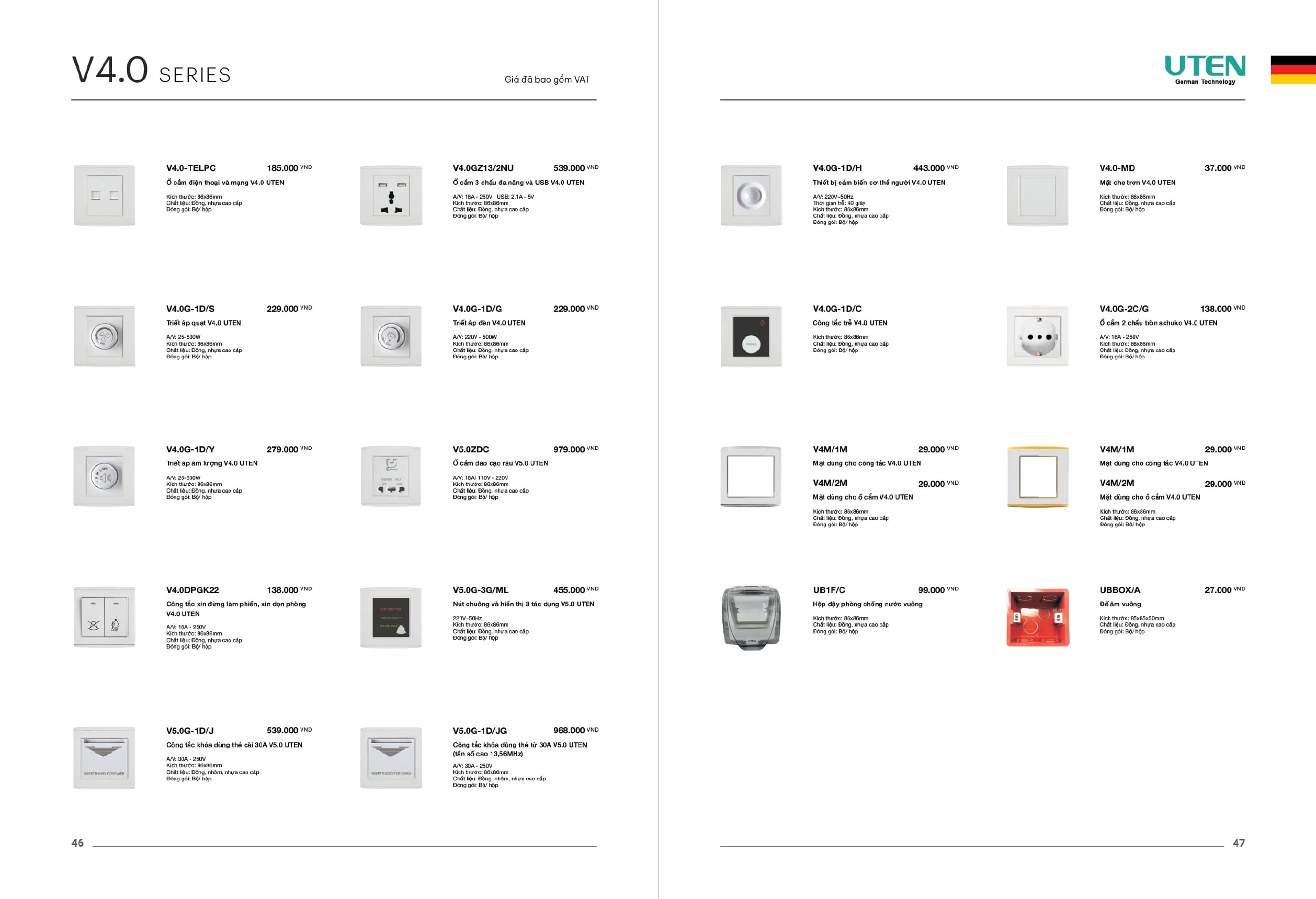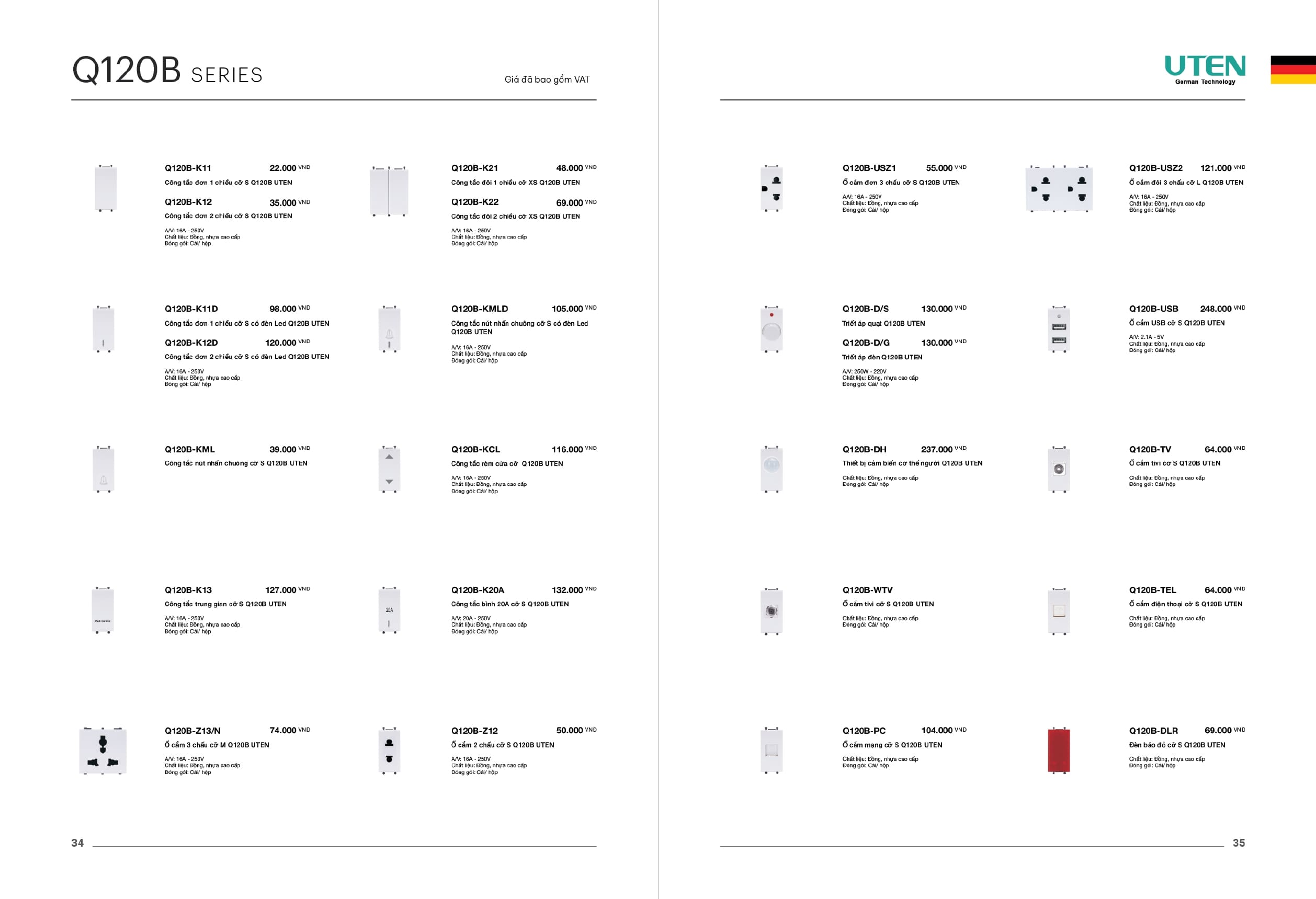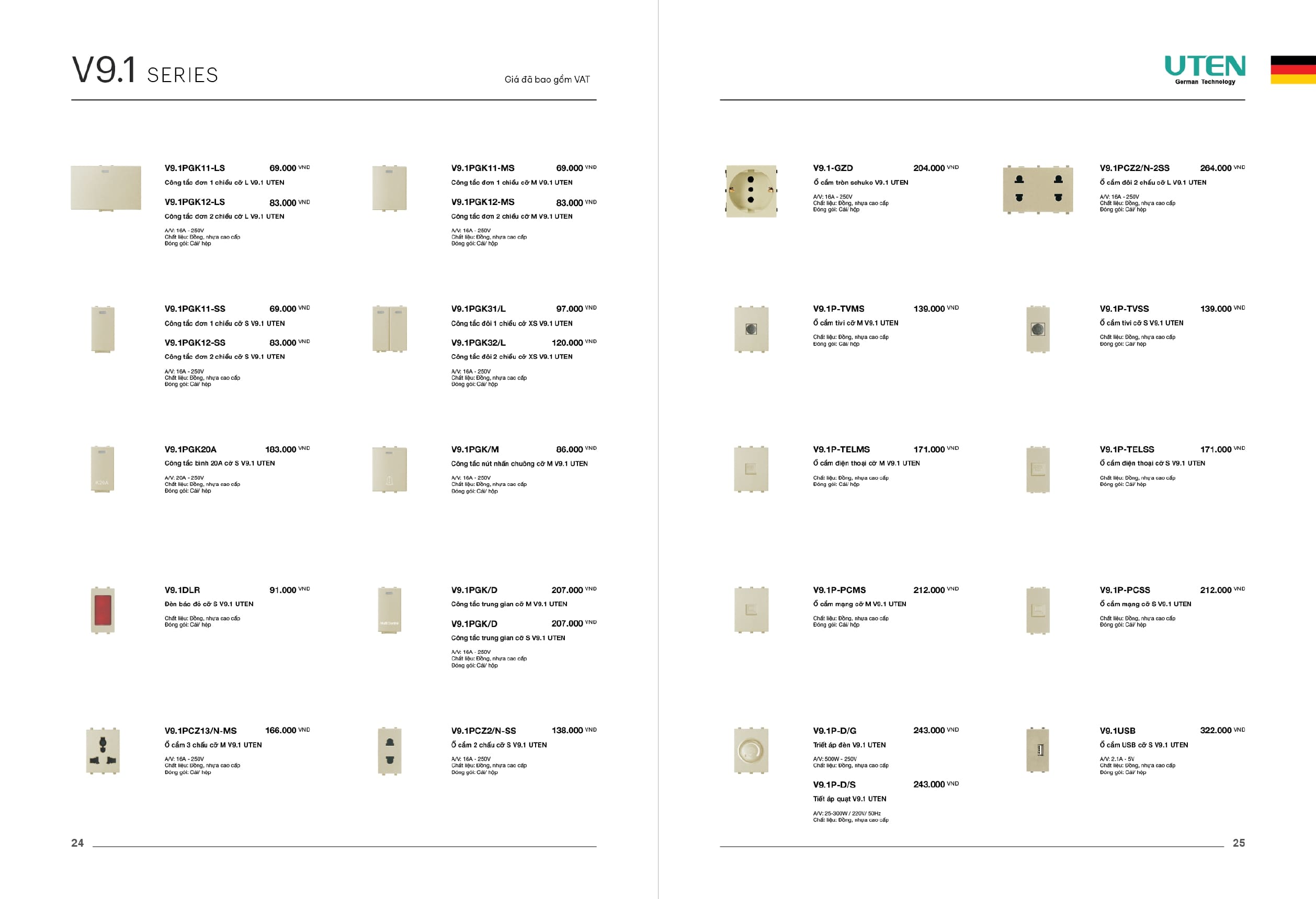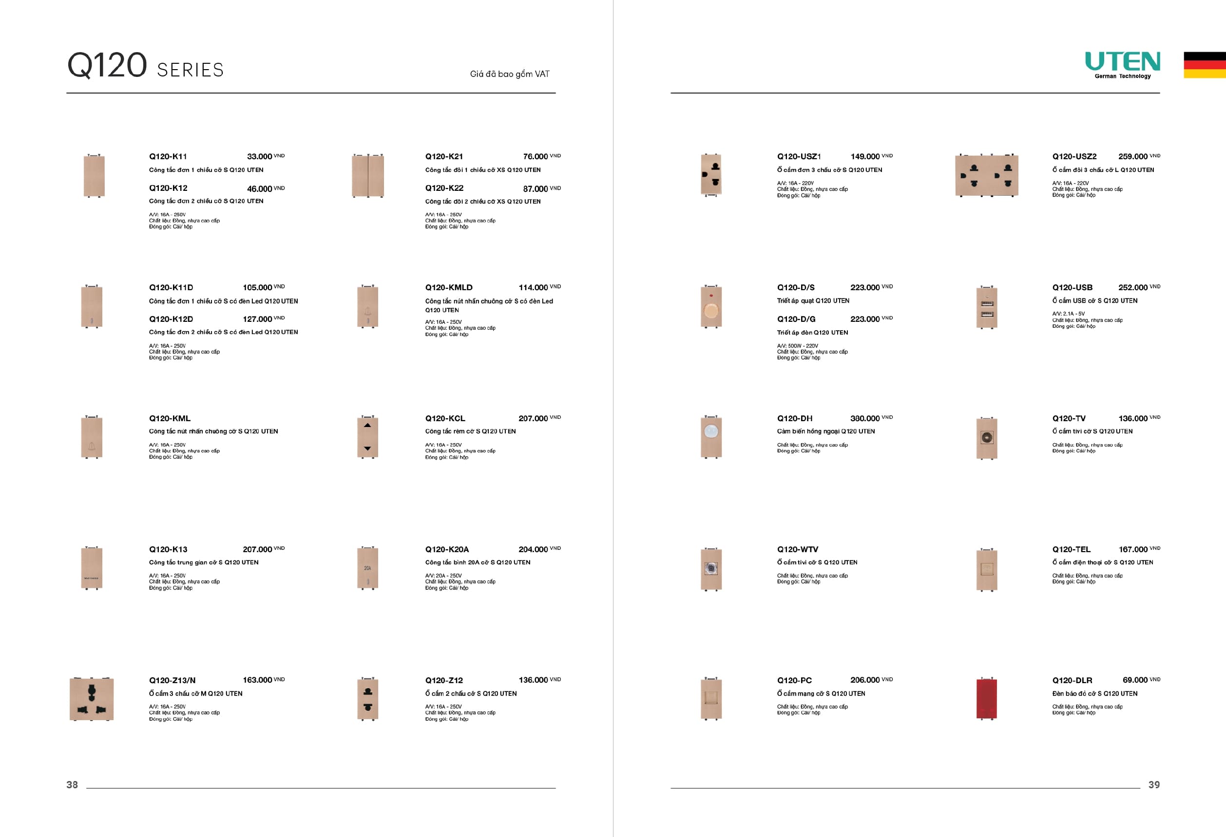 Bảng giá công tắc ổ cắm-Thiết bị điện Uten gồm dòng V6 uten, dòng V4 Uten, Q7 uten, công tắc uten, công tắc điện Uten của Đức, Ổ cắm điện Uten, âm sàn Uten