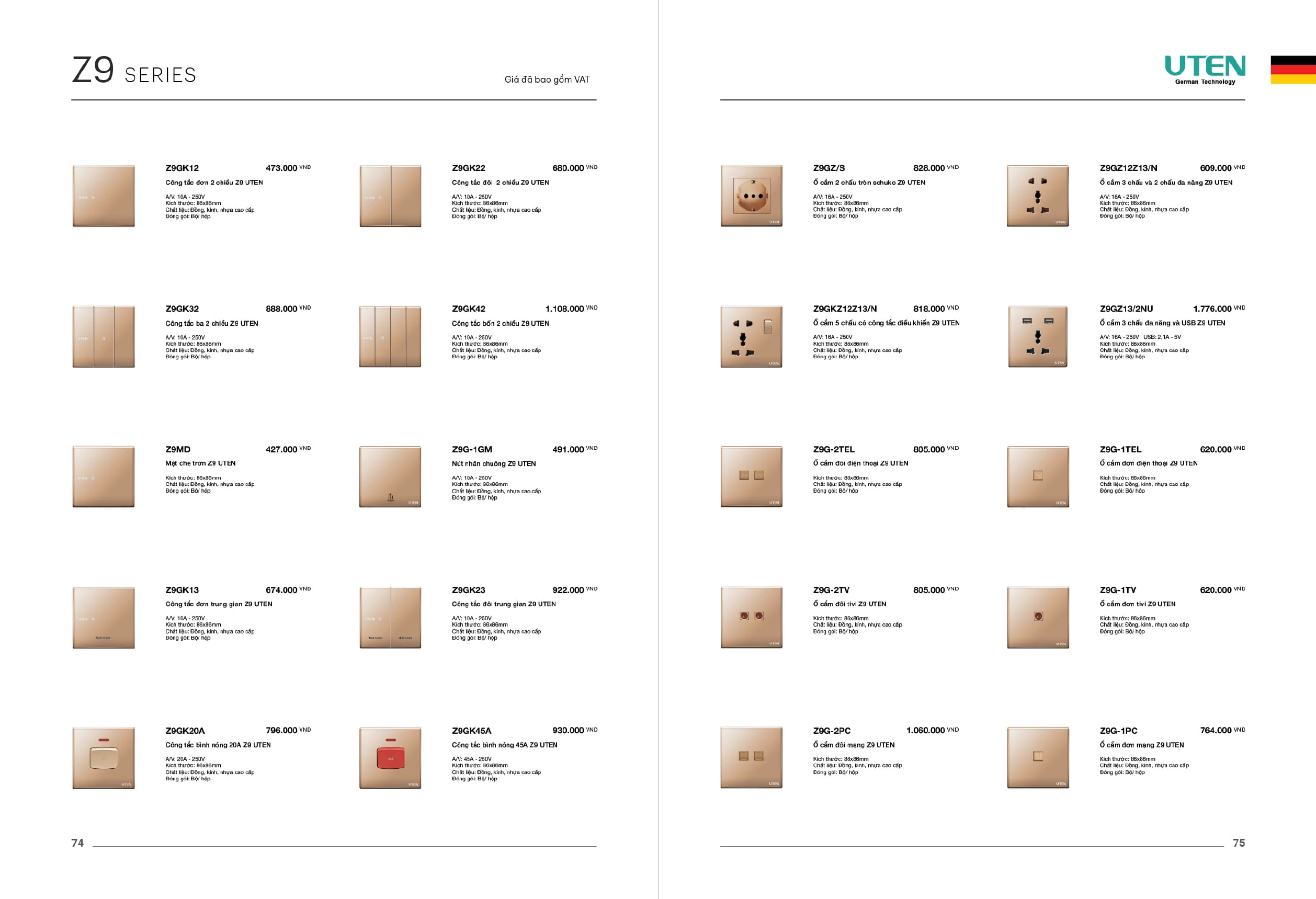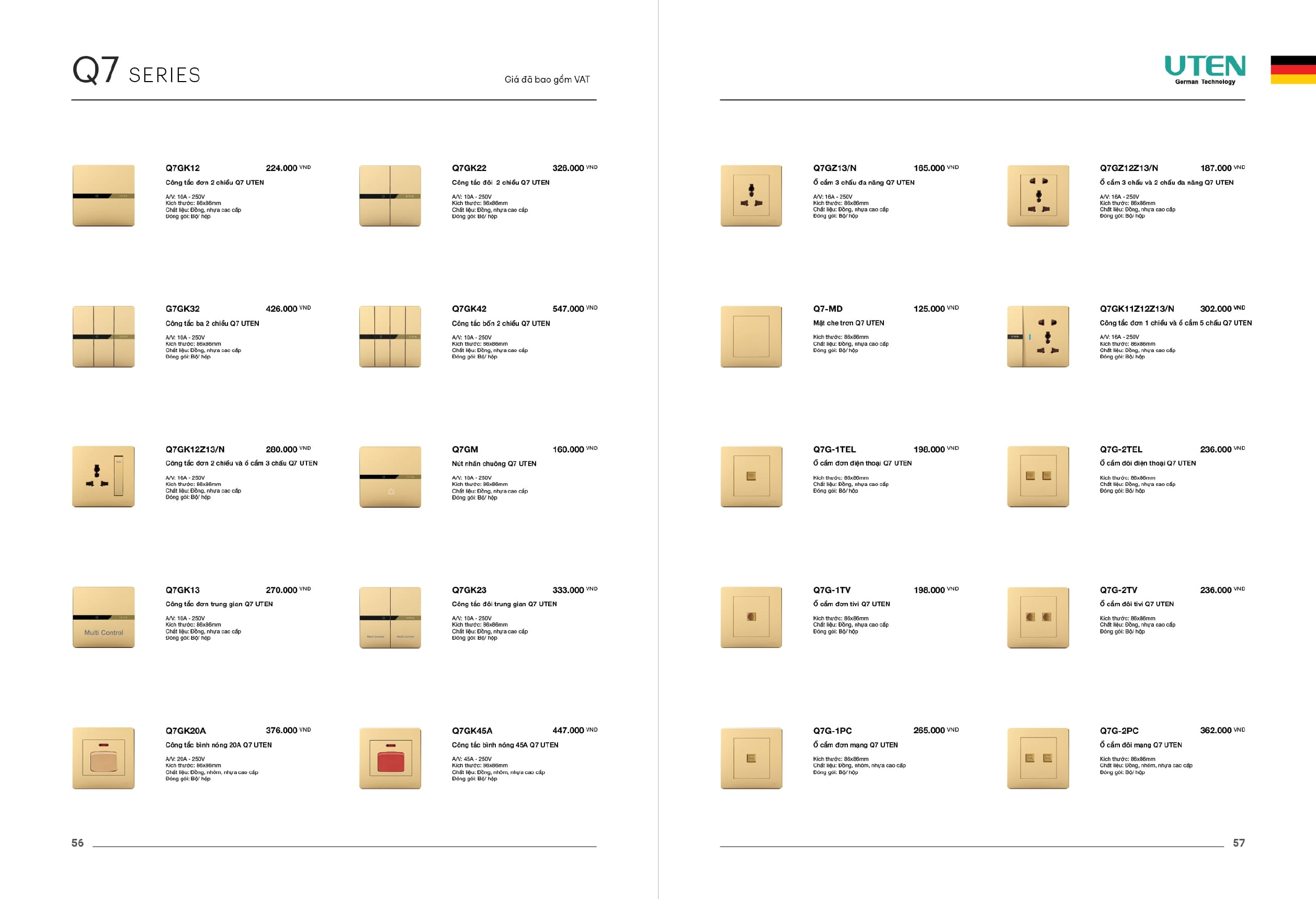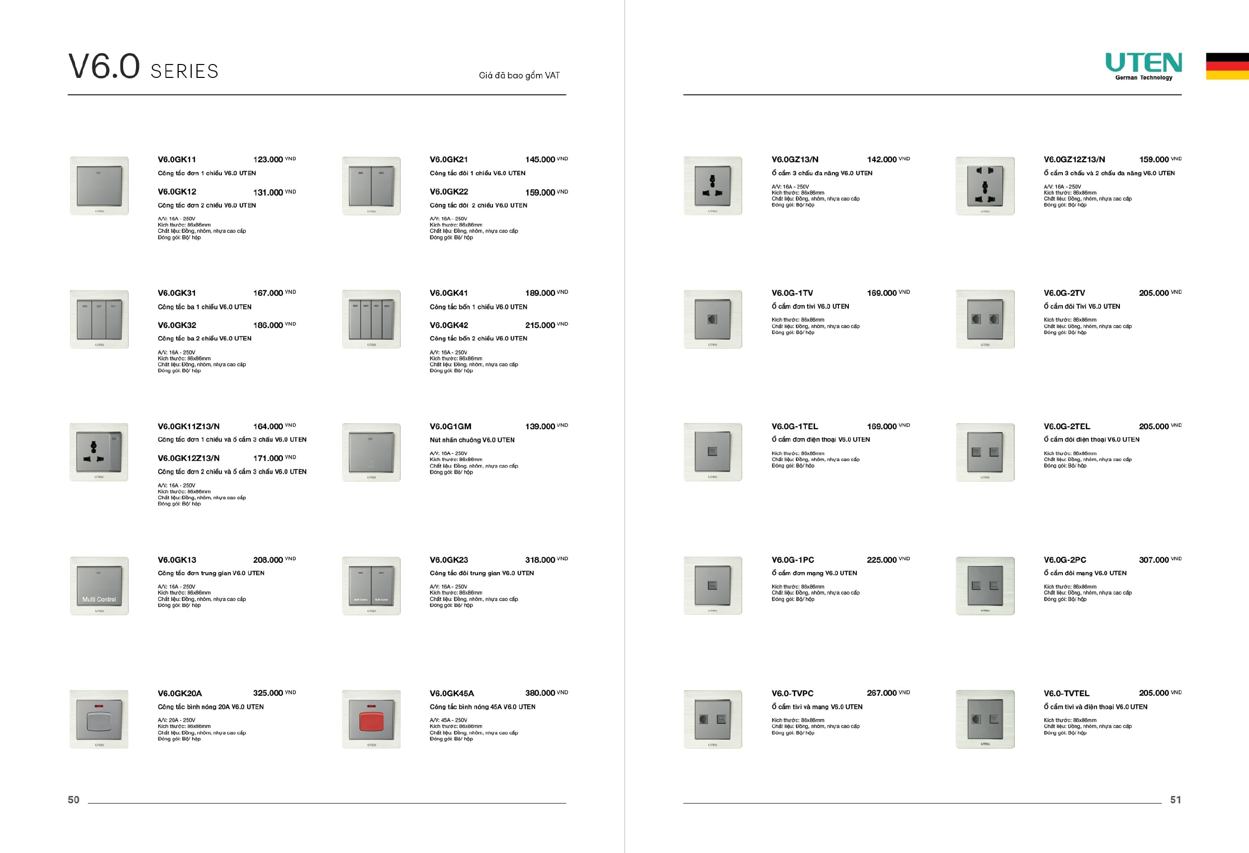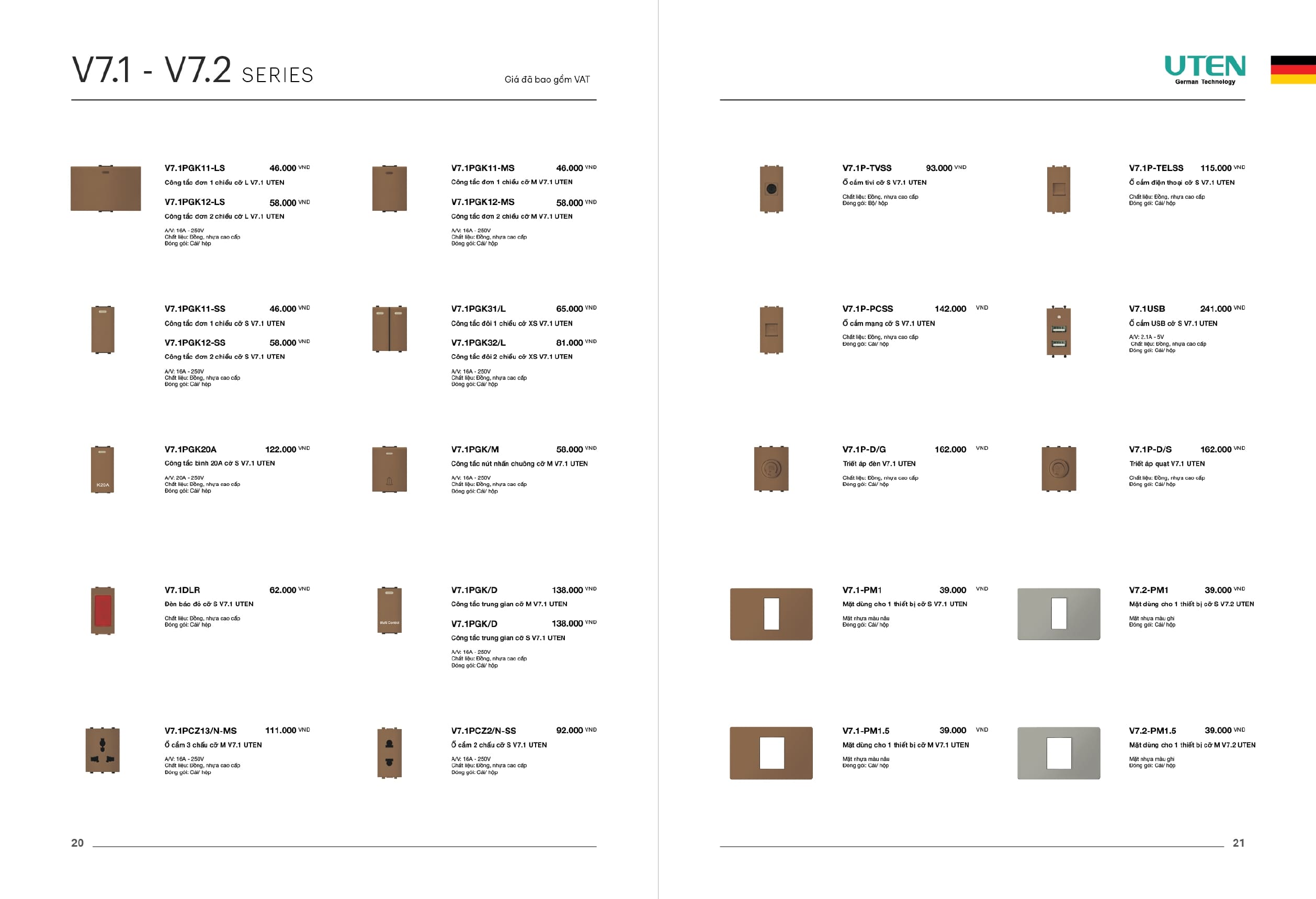 Bảng giá công tắc ổ cắm-Thiết bị điện Uten gồm dòng V6 uten, dòng V4 Uten, Q7 uten, công tắc uten, công tắc điện Uten của Đức, Ổ cắm điện Uten, âm sàn Uten