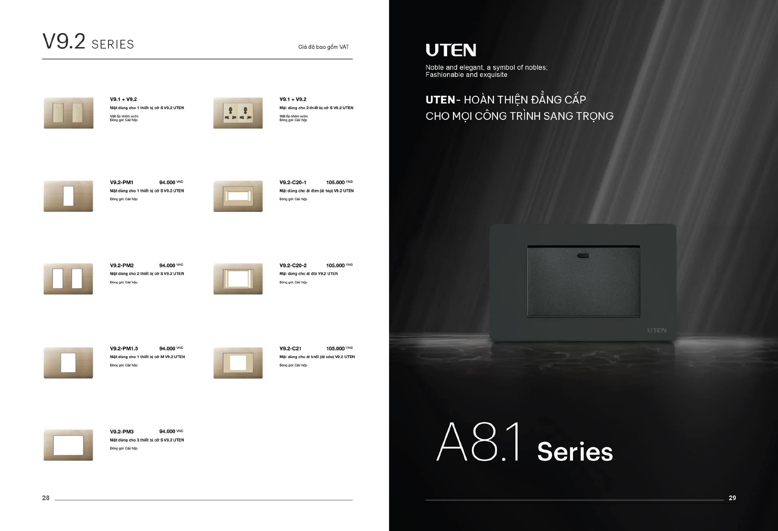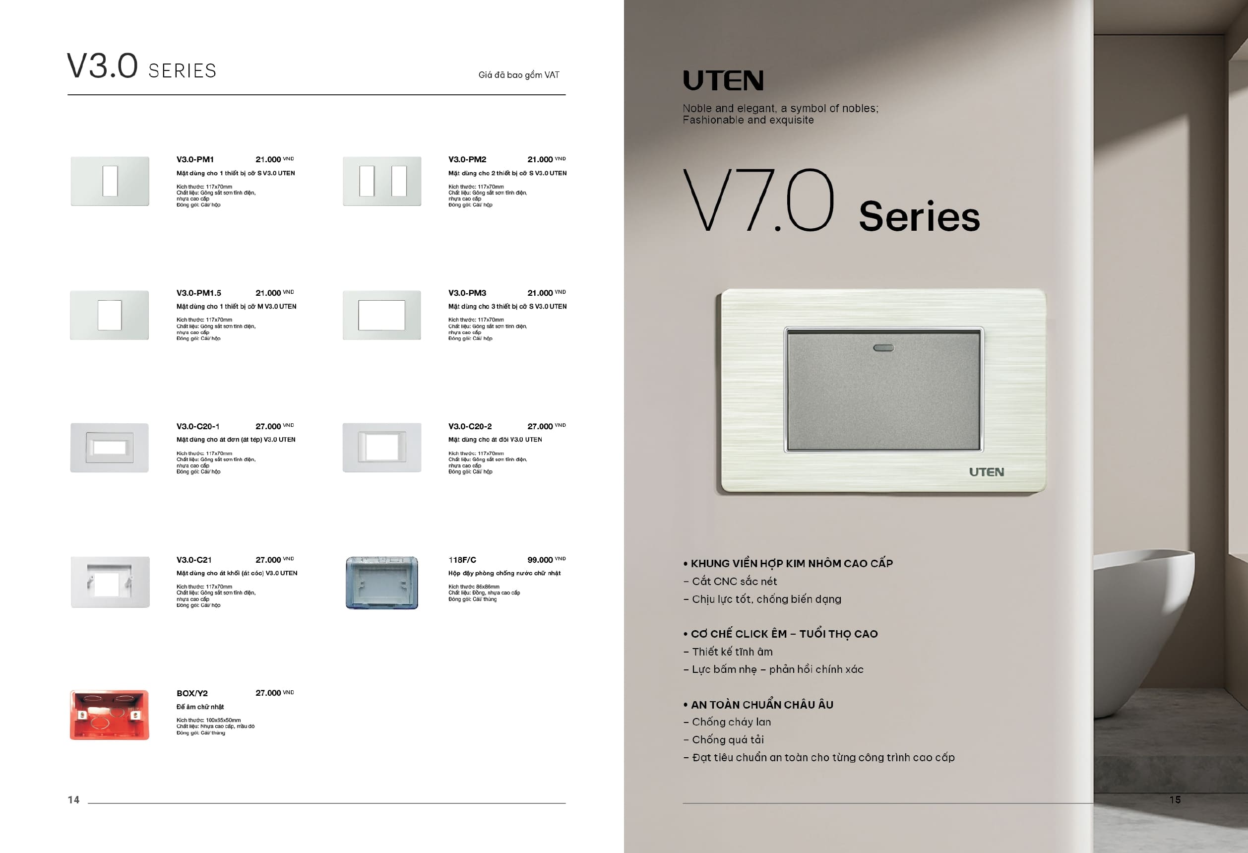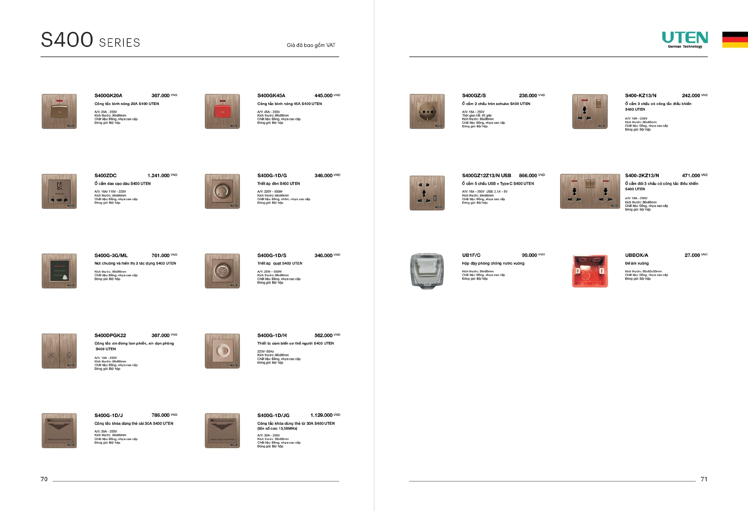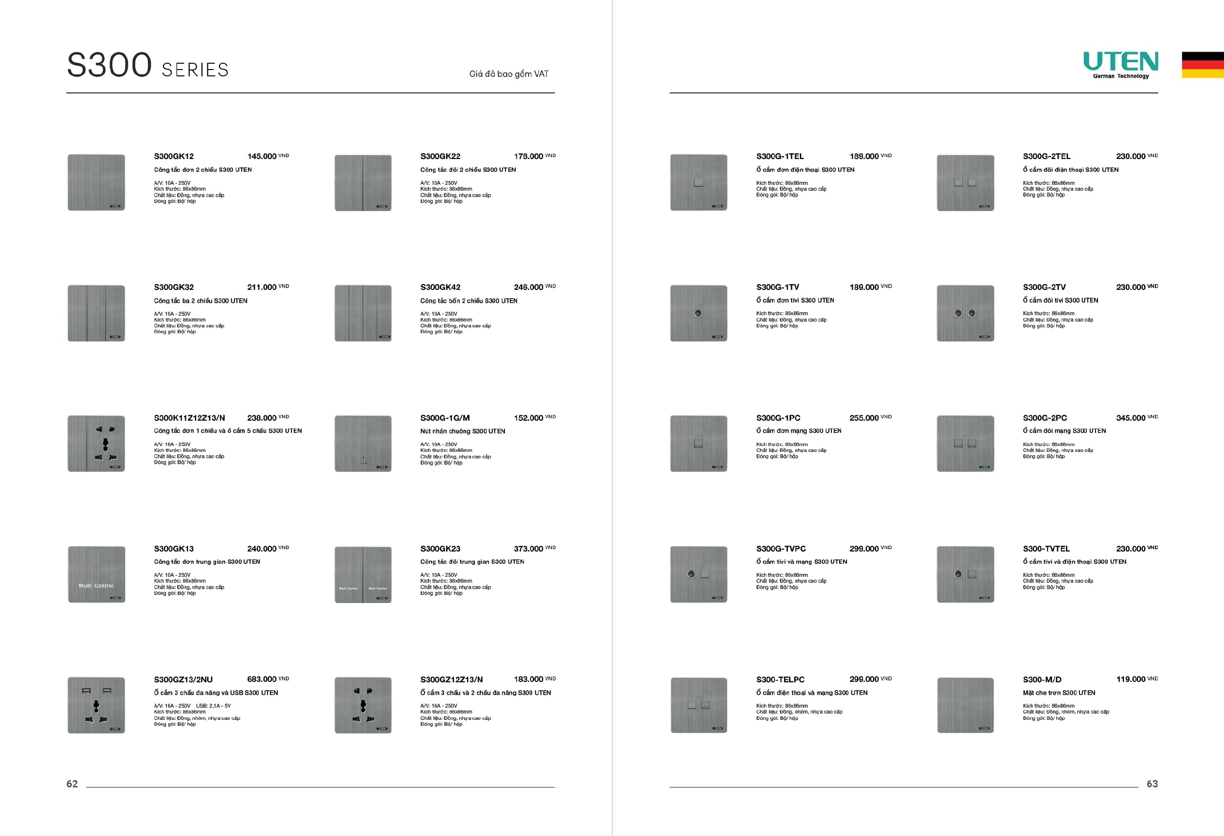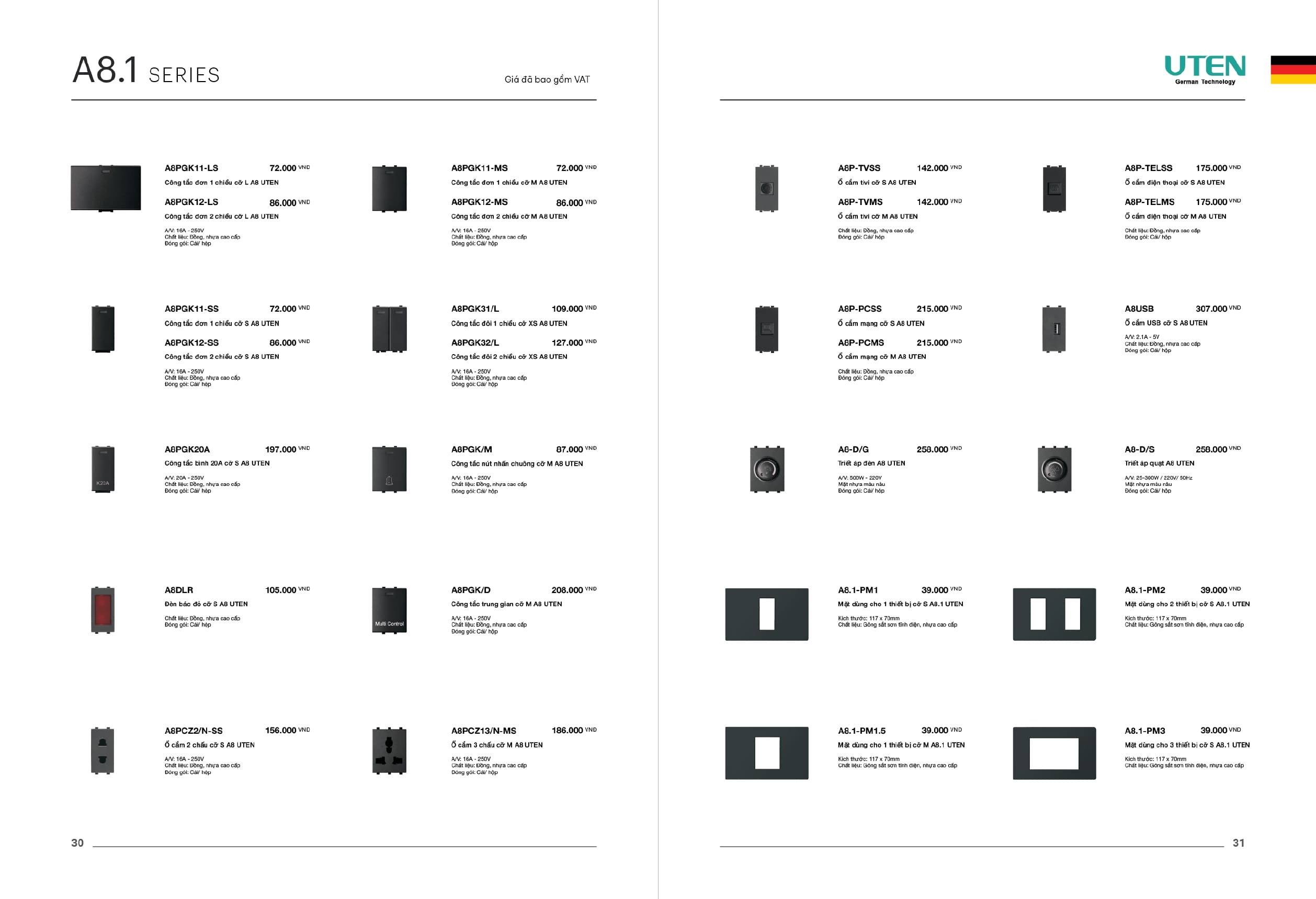 Bảng giá công tắc ổ cắm-Thiết bị điện Uten gồm dòng V6 uten, dòng V4 Uten, Q7 uten, công tắc uten, công tắc điện Uten của Đức, Ổ cắm điện Uten, âm sàn Uten