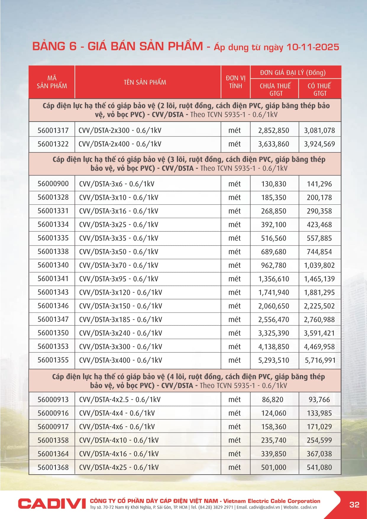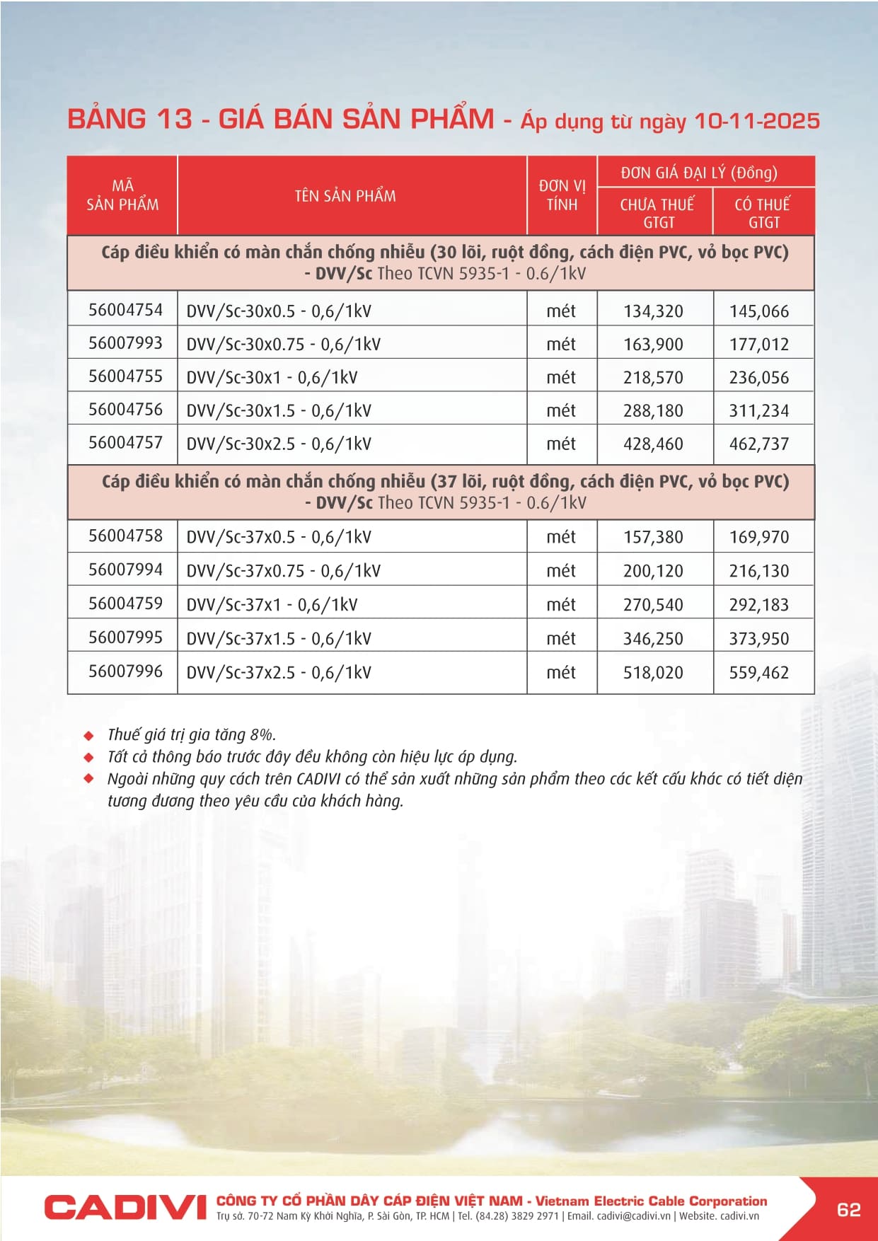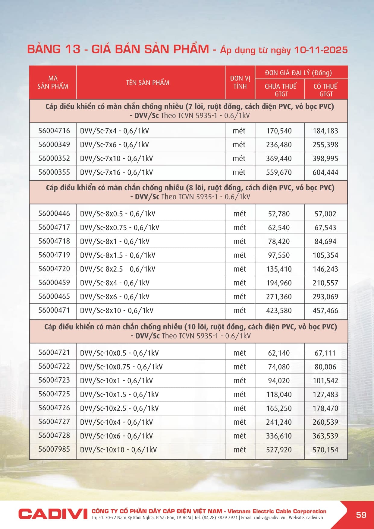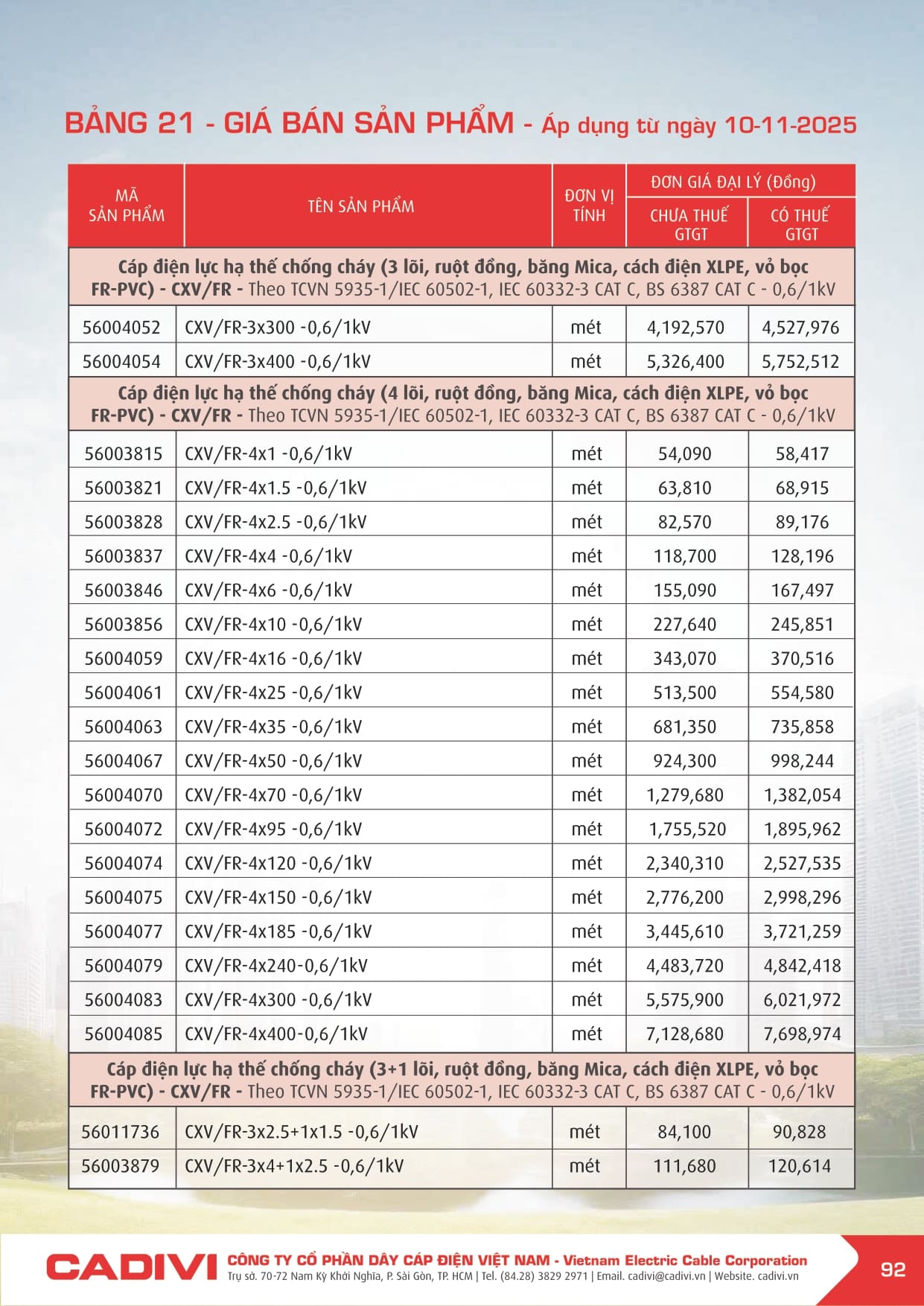 Bảng giá dây điện Cadivi 2026