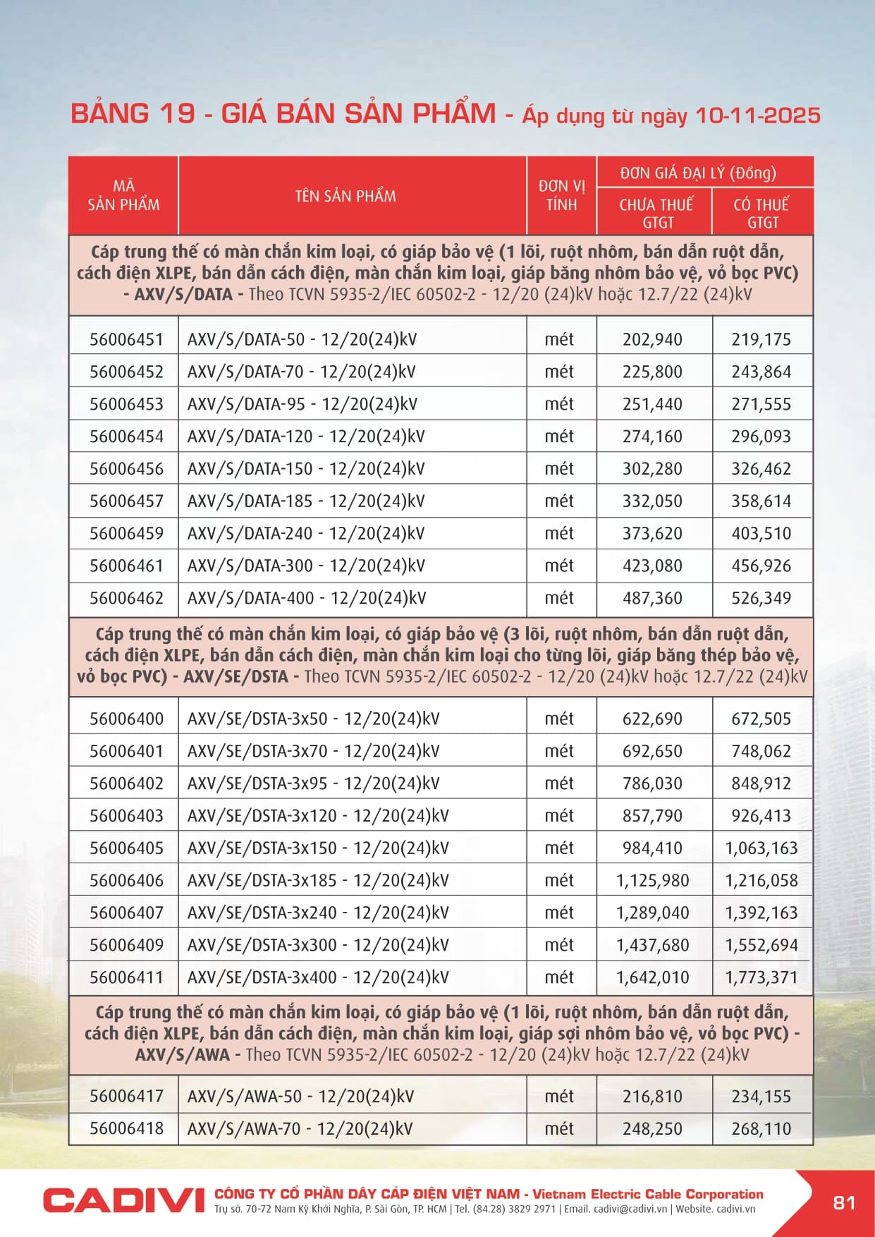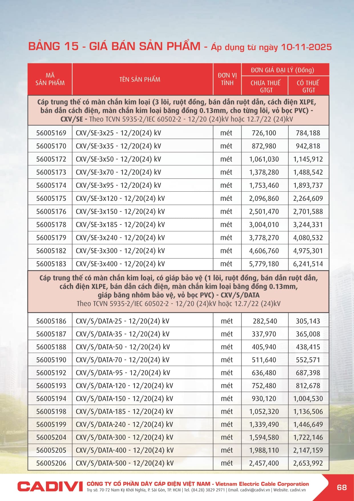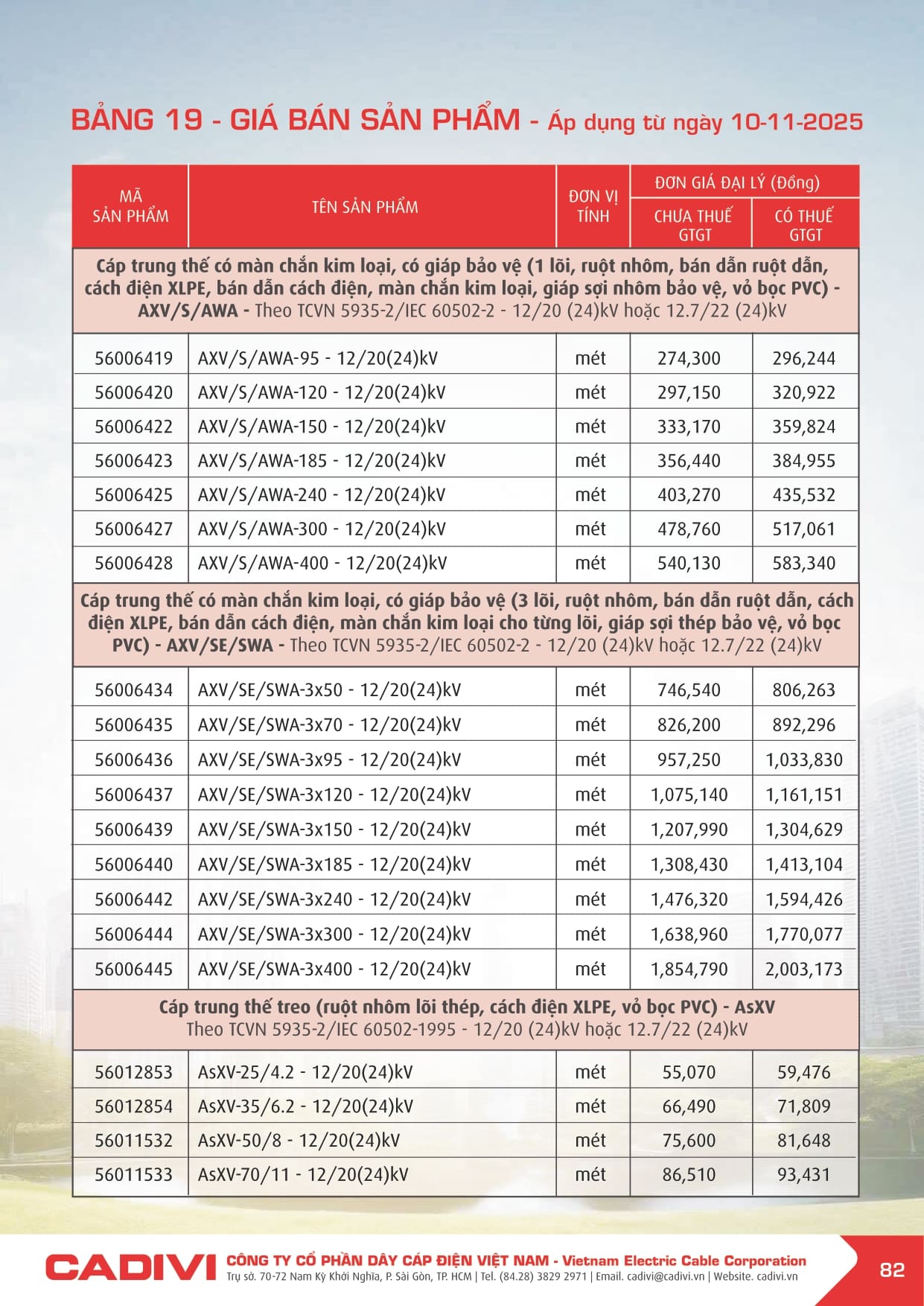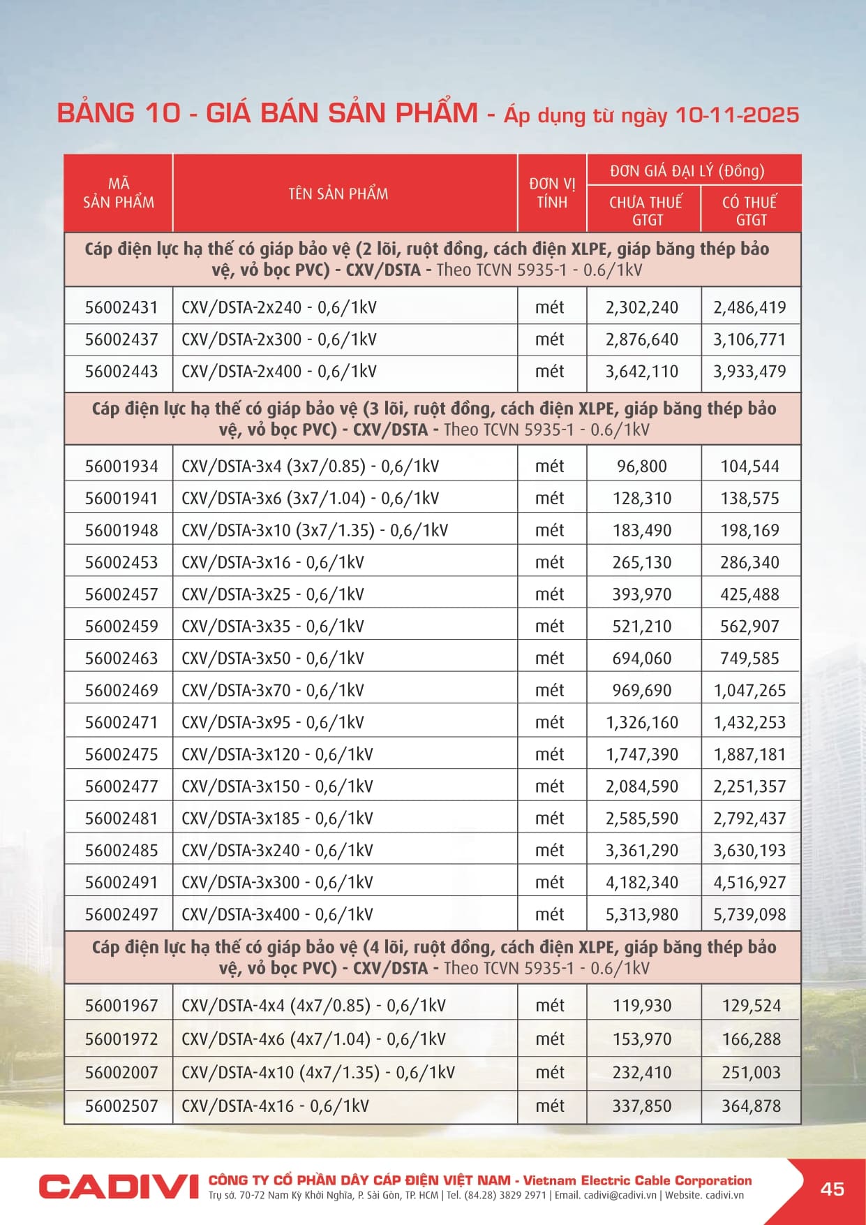 Bảng giá dây điện Cadivi 2026