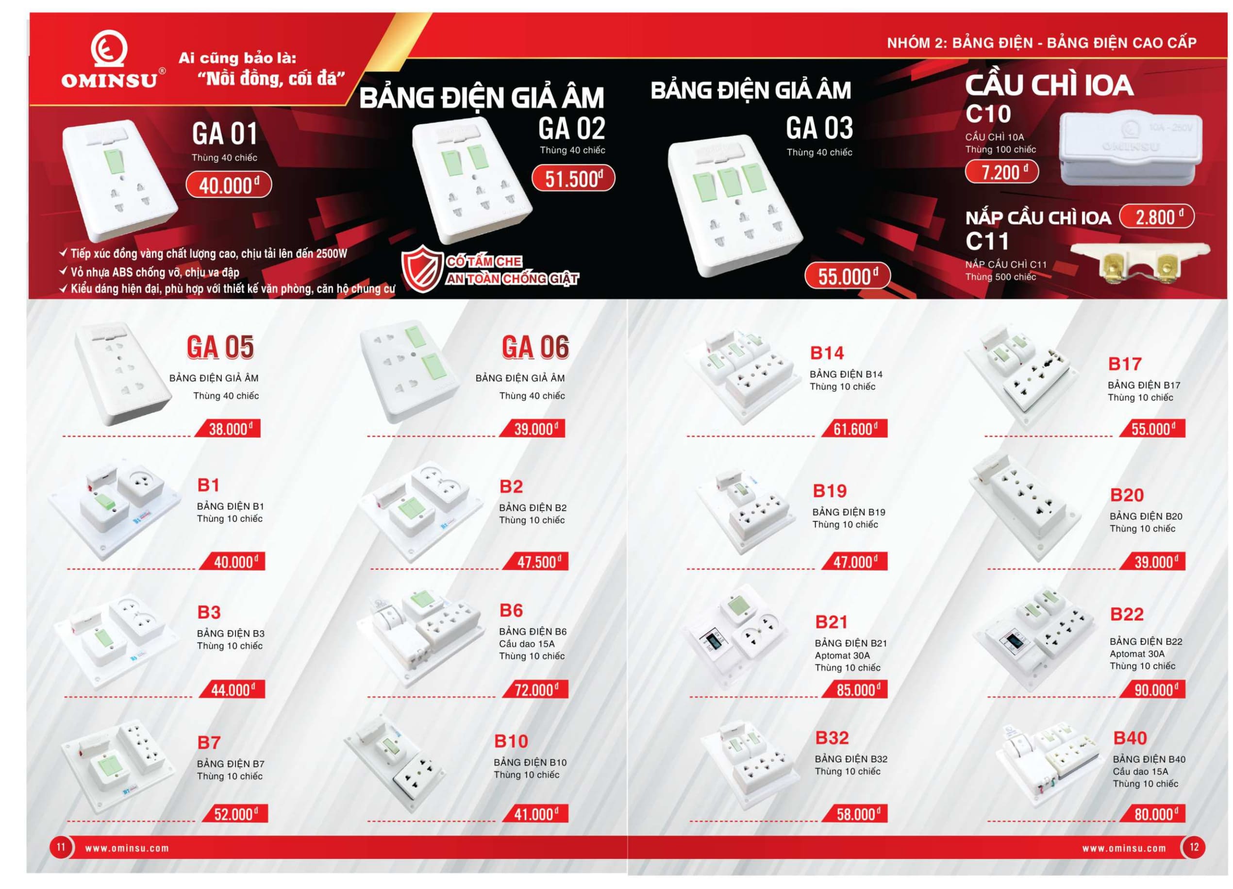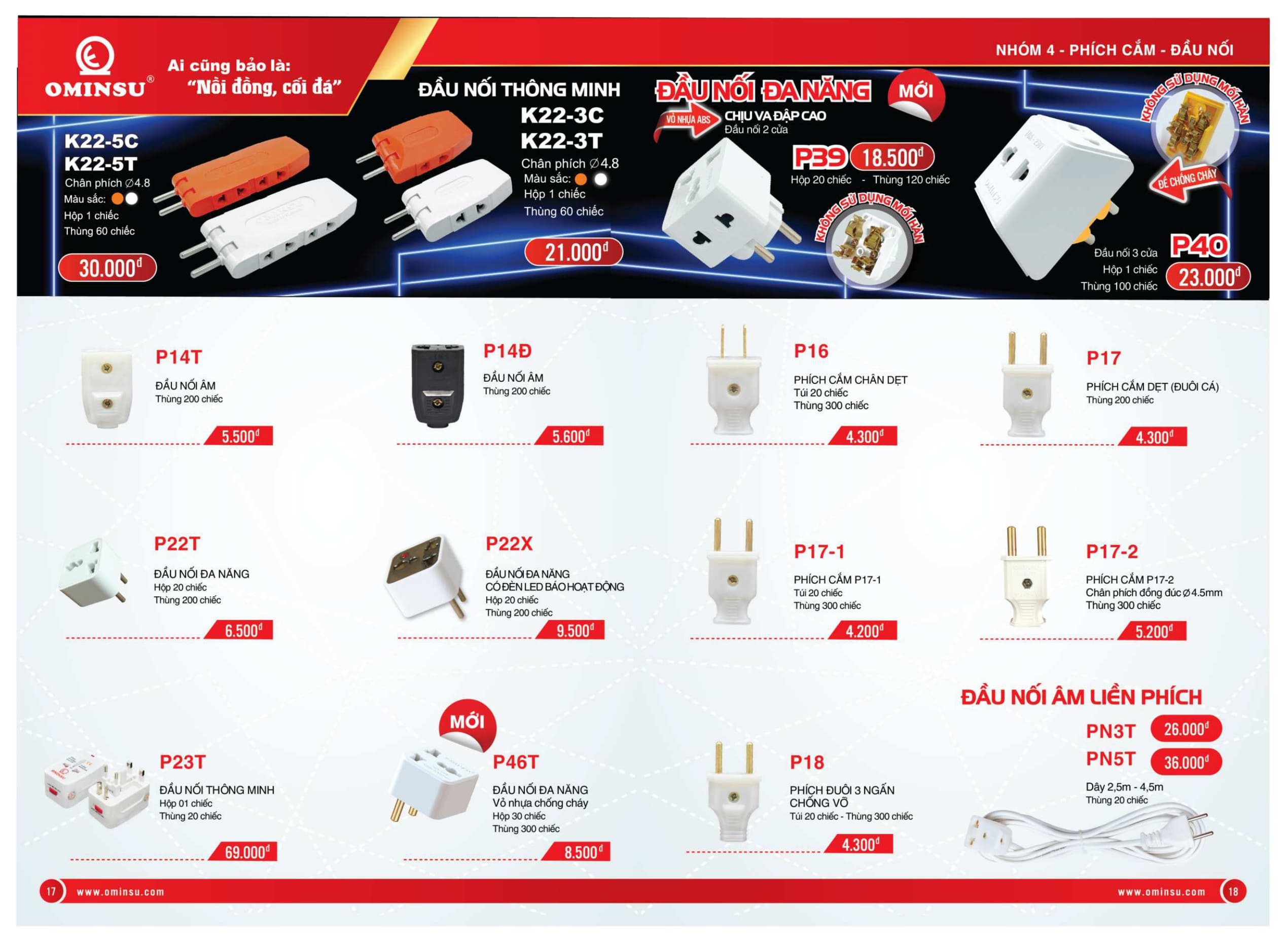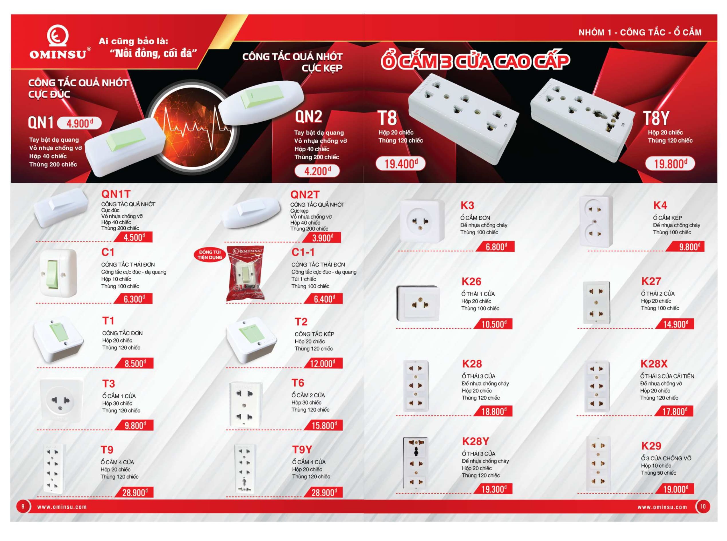 Bảng giá thiết bị điện công tắc ổ cắm giá rẻ Ominsu là thương hiệu việt nam với công tắc ổ cắm giá rẻ dành cho phòng trọ, thiết bị điện giá rẻ, cầu dao đảo