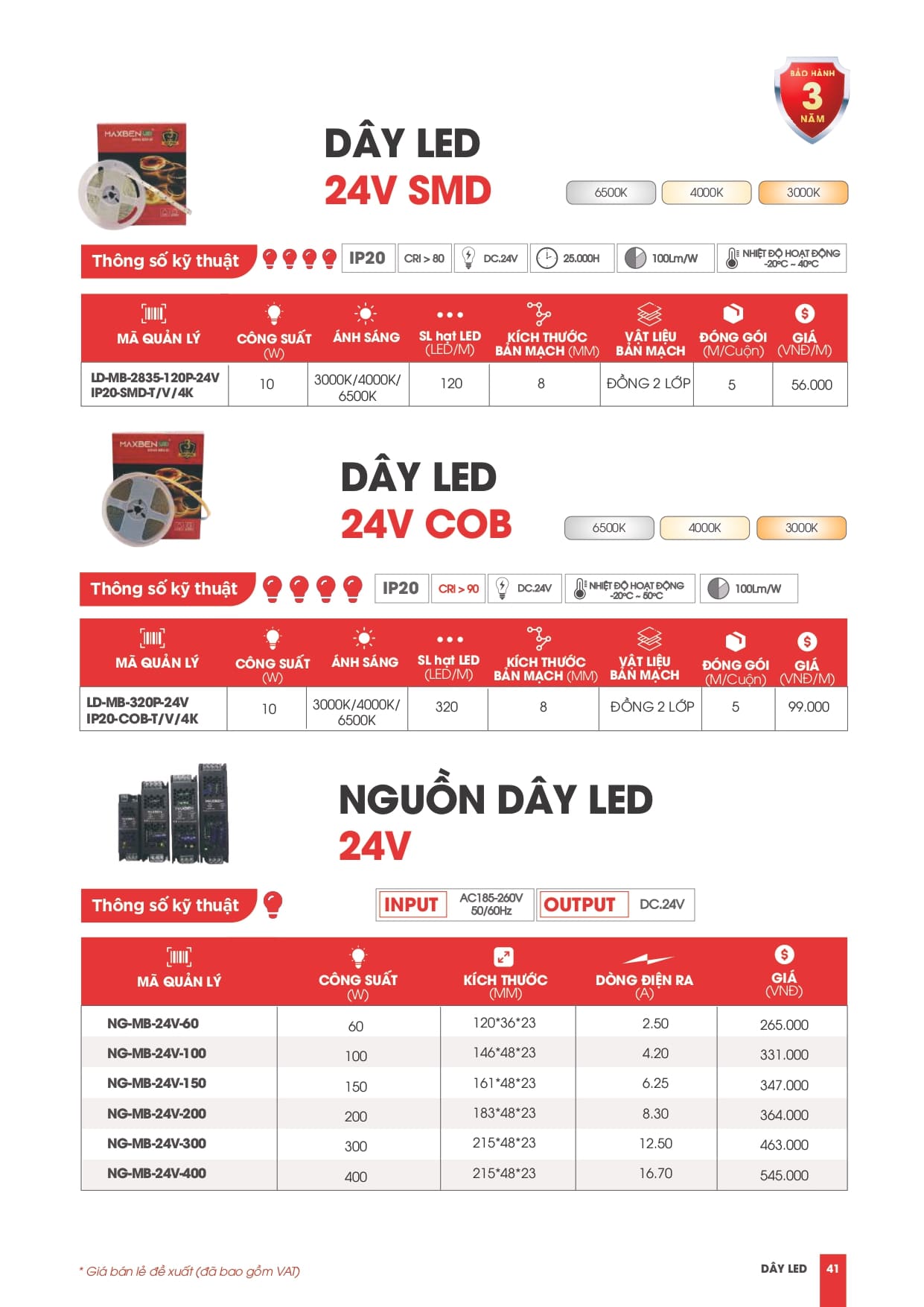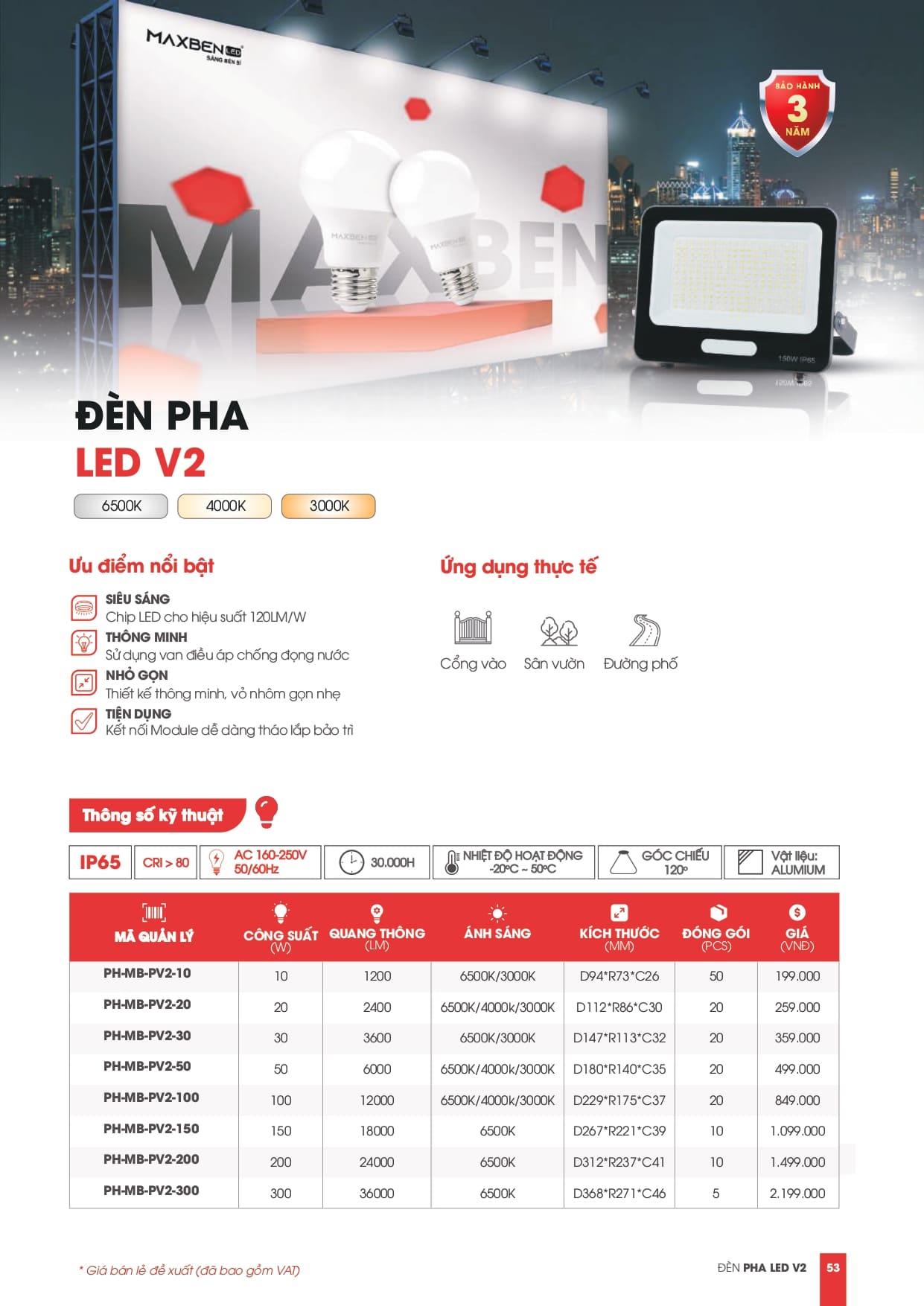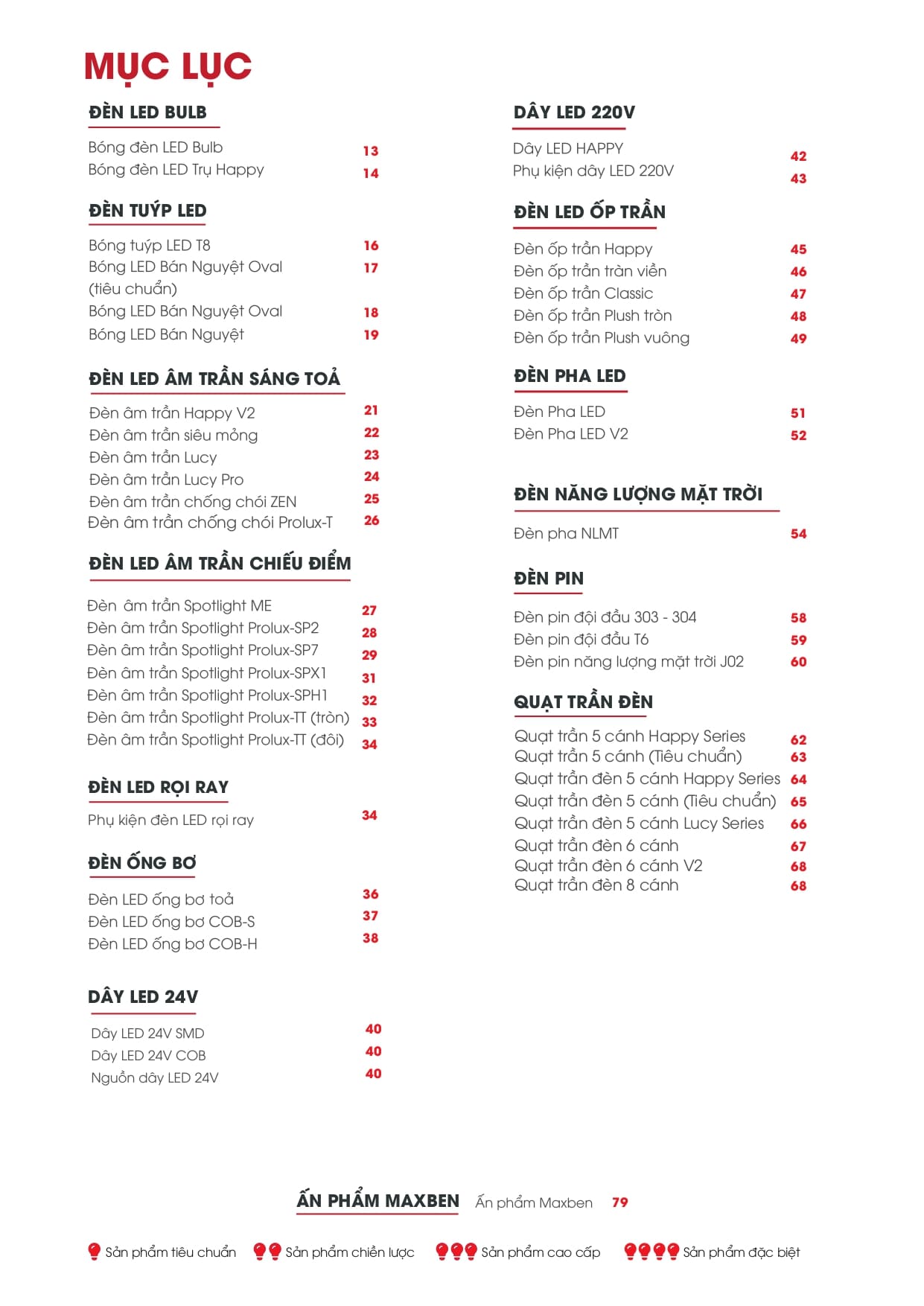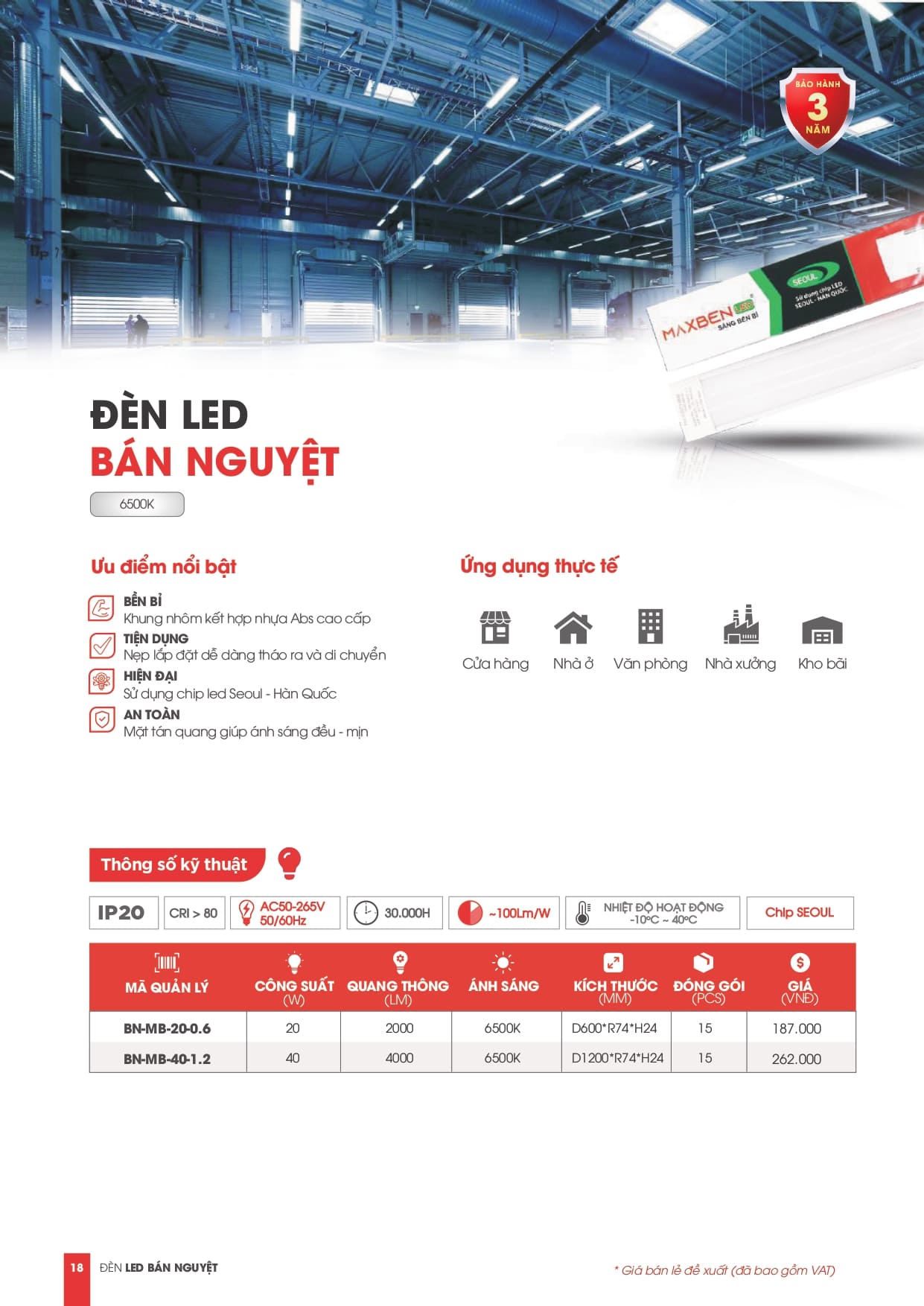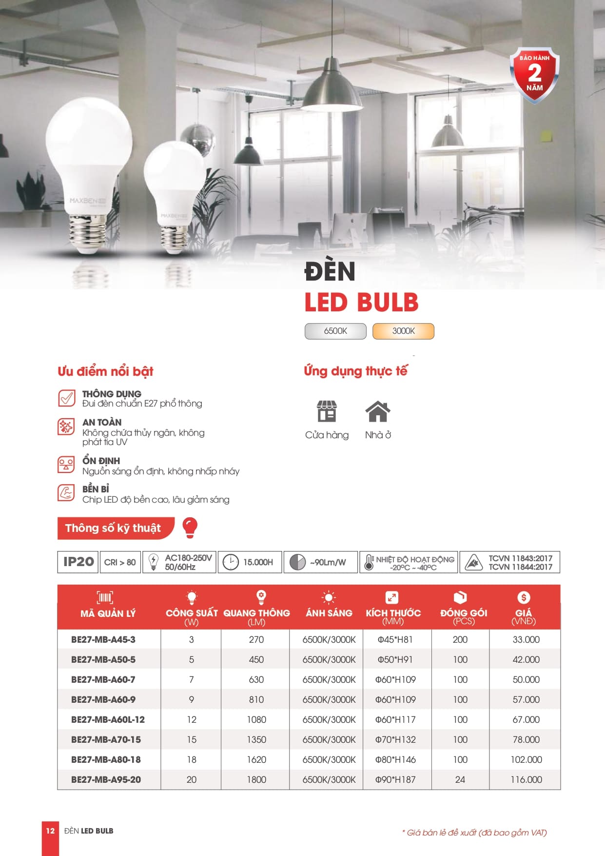 Catalogue bảng giá đèn led Maxben 2026 Mới Nhất