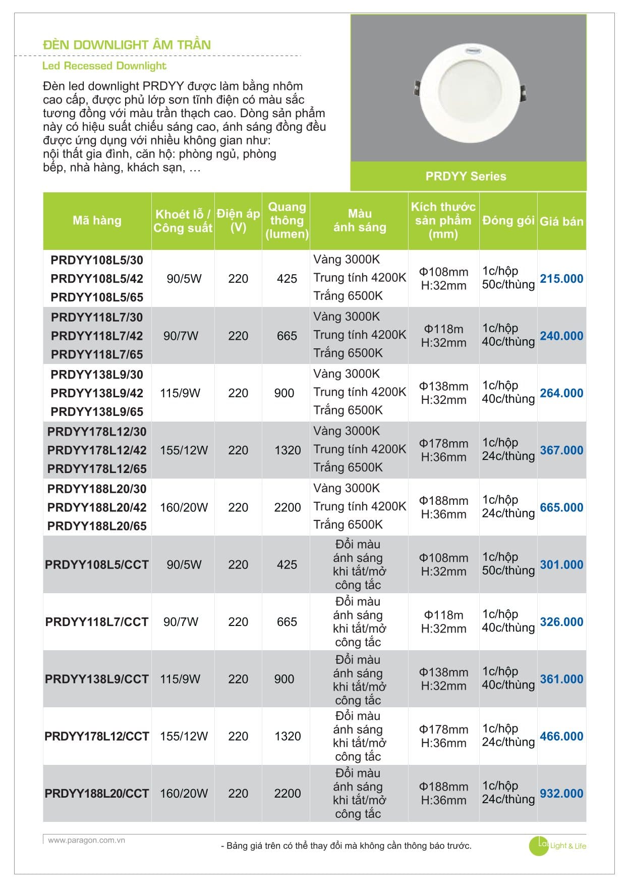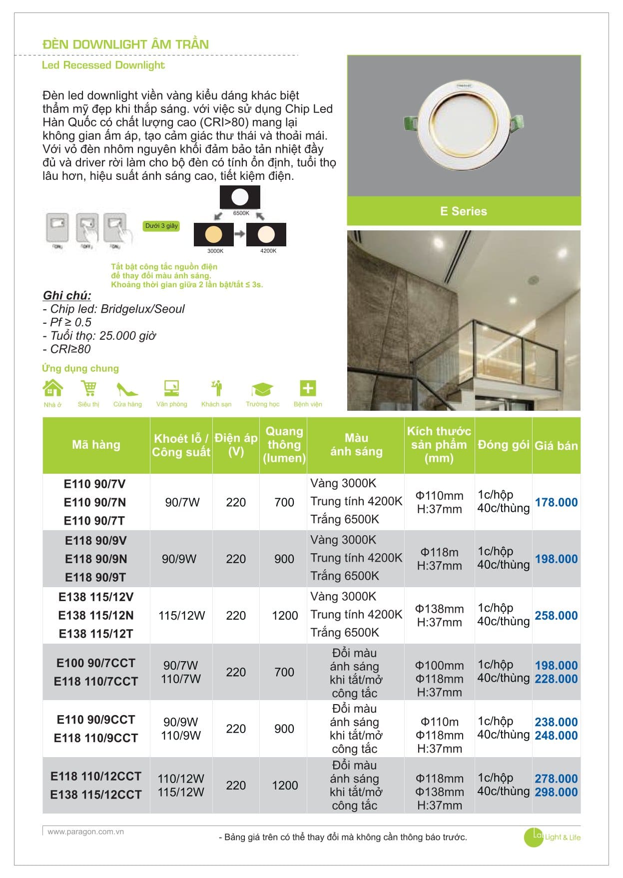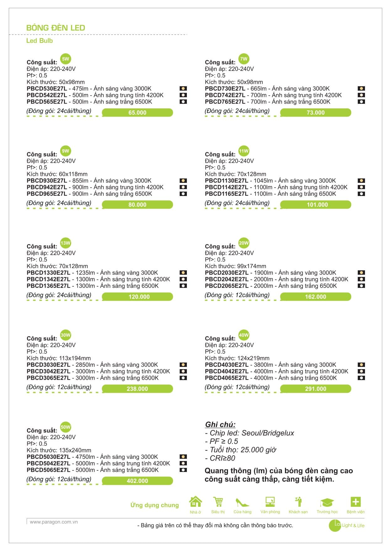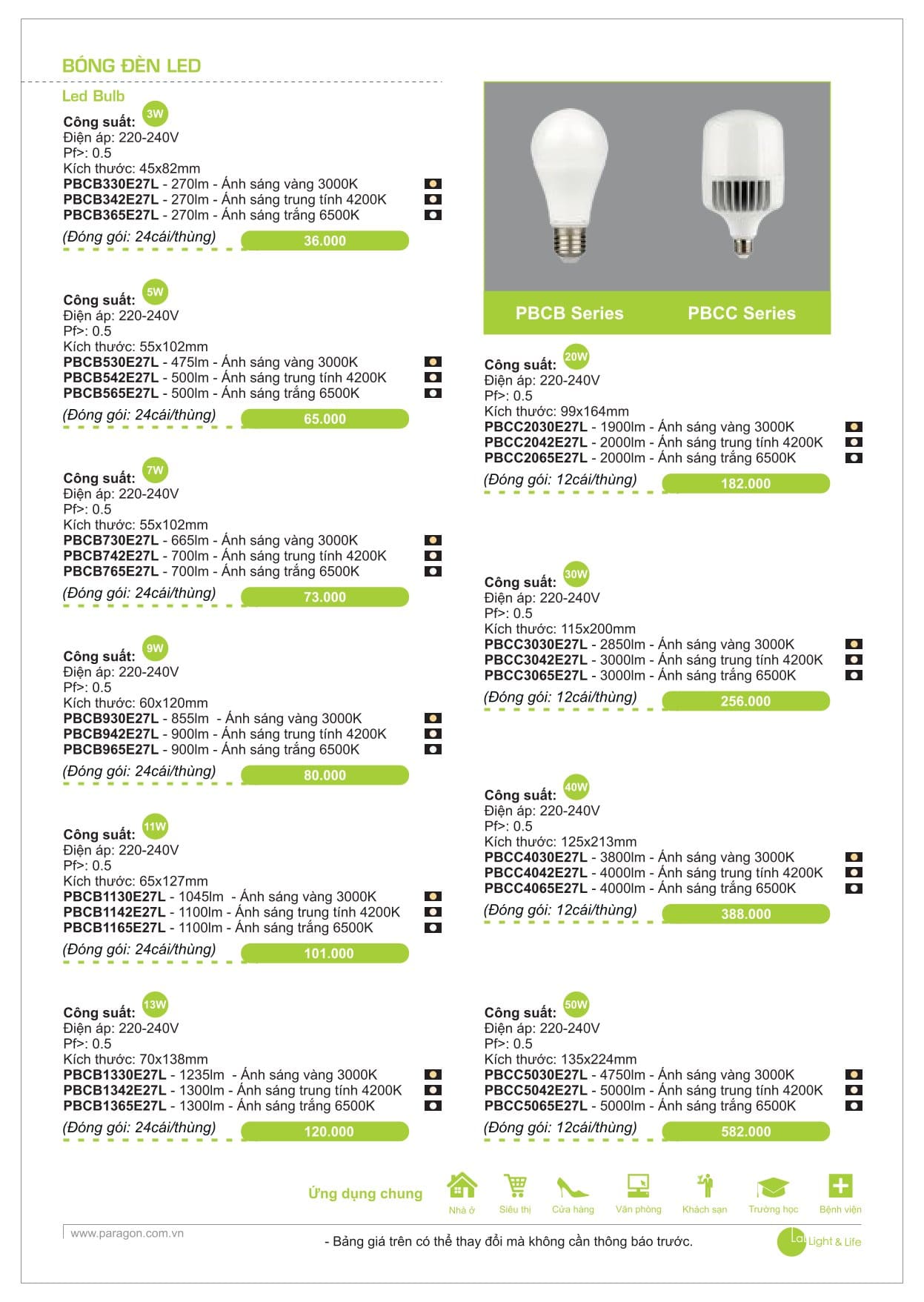 Catalogue đèn chiếu sáng dân dụng Paragon 2026 Mới Nhất