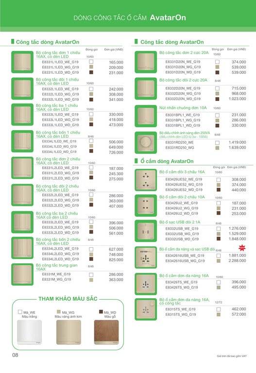 Màu sắc | E8331L1LED_WE_G19: Màu Trắng E8331L1LED_WG_G19: Màu vàng đồng E8331L1LED_WD_G19: Màu gỗ |