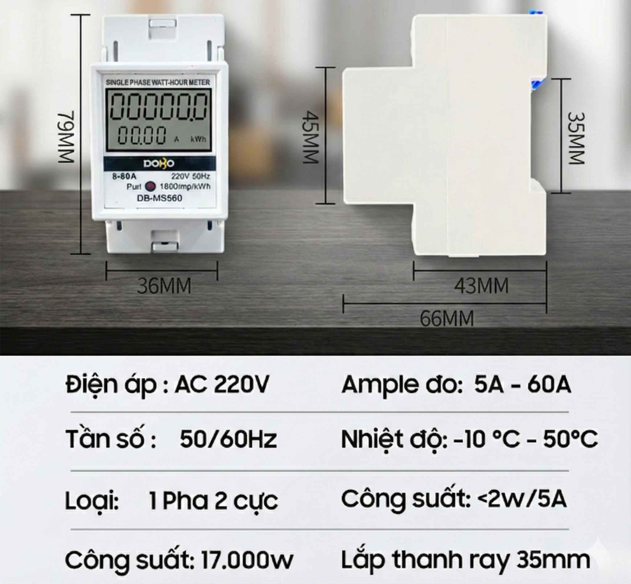 Tiết kiệm không gian: Kích thước của DB-MS560 chỉ tương đương một chiếc Aptomat 2 cực. Bạn có thể lắp nó gọn gàng trên thanh ray 35mm trong tủ điện tổng hoặc tủ điện phòng.