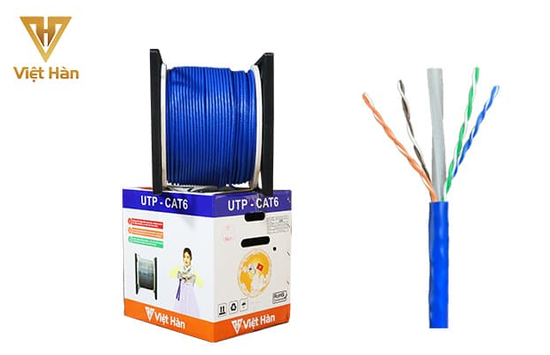 Dây cáp mạng UTP cat6 Việt Hàn có lõi chữ thập phân chia thành 4 dây có độ xoắn đặt chuẩn quốc tế.
