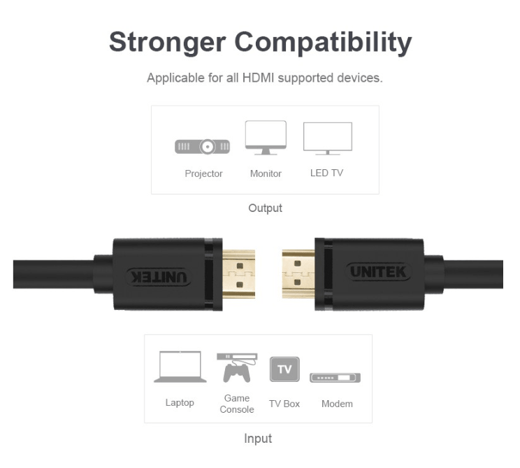 Dây HDMI 3M Unitek YC 139 là thiết bị truyền tải cùng lúc cả hai tín hiệu âm thanh và hình ảnh lên thiết bị trình chiếu như máy chiếu, Tivi, Máy tính,...mà không cần thông qua 2 dây cáp VGA và AV bông sen rườm rà, thậm chí còn gây bất cập trong việc truyền tải tín hiệu không đồng đều.