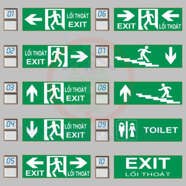 Đầy đủ kiểu dáng, bao gồm mũi tên chỉ hướng và hình người đang chạy.