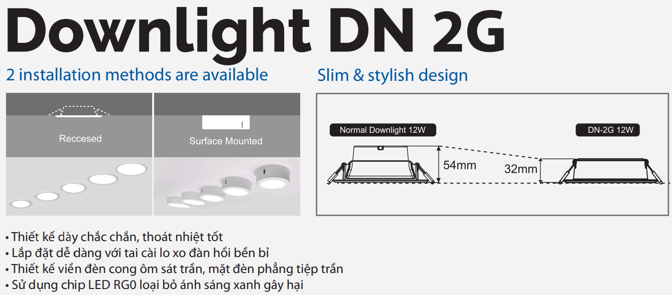 Đèn LED âm trần Panasonic DN Series 2G thế hệ mới còn có thể lắp nổi linh hoạt nhờ vào phụ kiện khung gắn nổi mua thêm, linh hoạt trong thiết kế
