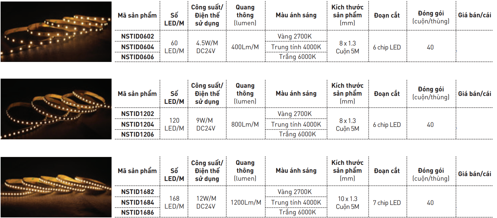 Đèn LED dây 24V Nanoco là sản phẩm đèn LED dây không vỏ bọc được sản xuất bằng cách đưa các modun chip LED gắn lên một dải mạch mềm, thế nên công suất của led dây tùy thuộc vào số chip LED Có trên dải mạch đó, chip LED càng nhiều thì dải led càng sáng, cụ thể là 60~168 chip LED/m.