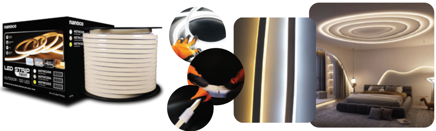 Nhờ vào việc sản xuất đúc liền khối, LED dây neon nanoco có khả năng chống nước tuyệt đối, phù hợp lắp đặt nội thất lẫn ngoài thất đều rất an toàn nhưng một lưu ý nhỏ cho việc lắp đặt ngoài trời, khi thi công tuyệt đối tránh tình trạng làm đứt dây và hạn chế ghép nối không cần thiết.