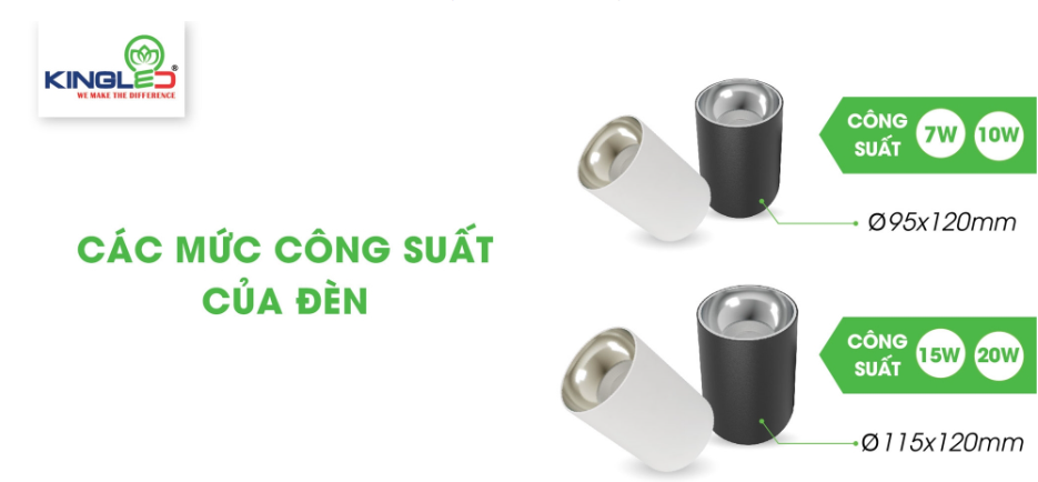 | Kích thước | Phi 95*120mm (7w, 10w) / Phi 115x120mm (15w, 20w) |