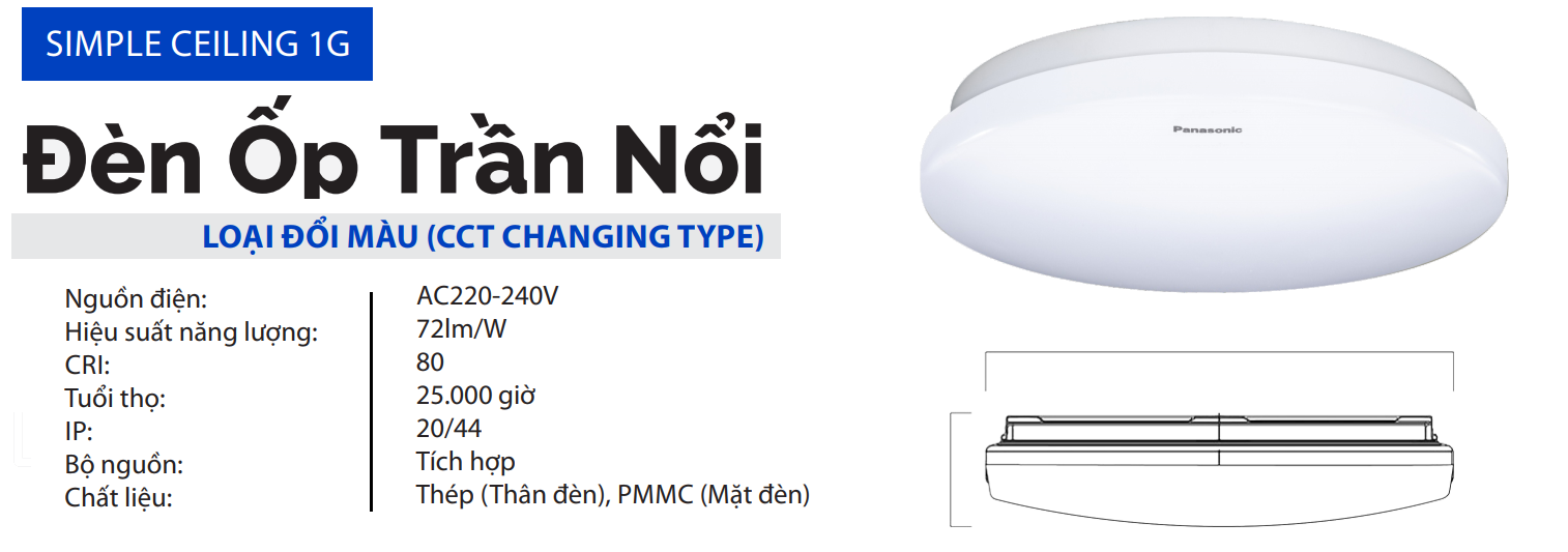 Đèn LED ốp nổi Panasonic Simple Ceiling 1g Sản xuất với dây chuyền hiện đại, sử dụng nguyên liệu chất lượng cao, chống cháy an toàn, được kiểm nghiệm và công nhận bởi CNAS, Chụp đèn không ngả vàng sau thời gian sử dụng