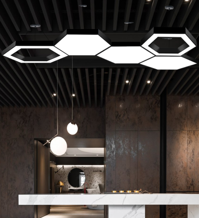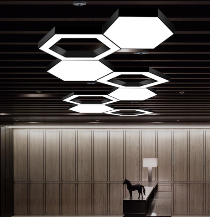 Là xu hướng thiết kế ánh sáng văn phòng hiện đại, Đèn thả văn phòng LỤC GIÁC đem lại nét đẹp tinh tế cho không gian bên cạnh đó còn đem lại hiệu quả chiếu sáng vượt trội, người dùng có thể ghép lại tạo hiệu ứng tổ ong vô cùng đẹp mắt