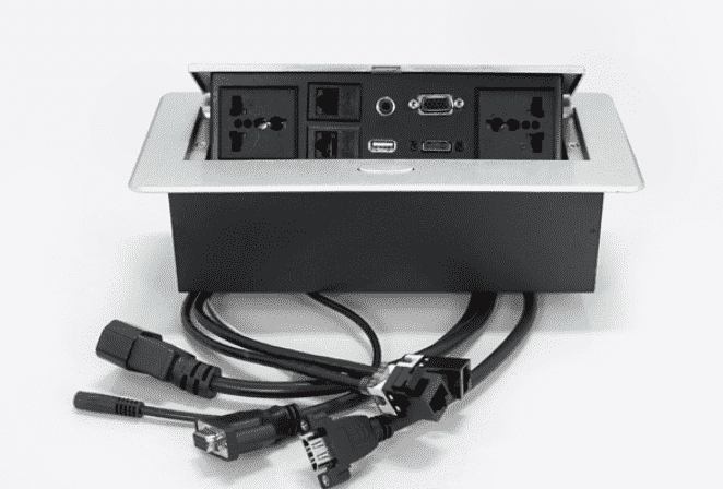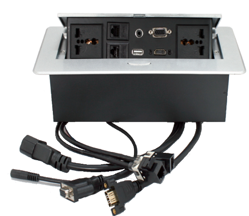 -Hộp điện âm bàn đa năng Sino Amigo 201x đã ba gồm modules bên trong bao gồm 2 ổ cắm đơn 3 chấu đa năng , 1 ổ LAN, 1 Ổ TEL, 1 Ổ HDMI, 1 Ổ VGA, 1 Ổ audio, và 1ổ USB ,1 hộp đế âm bằng kim loại dùng lắp che các thiểt bị bên dưới măt bàn