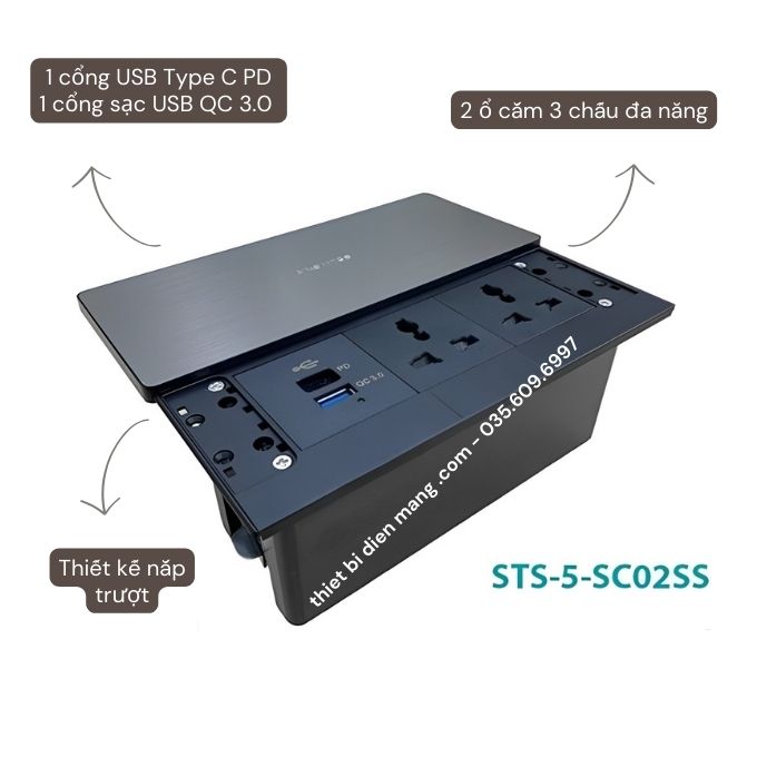 Thông số kỹ thuật hộp ổ cắm âm bàn đa năng STS-5-SC02SS