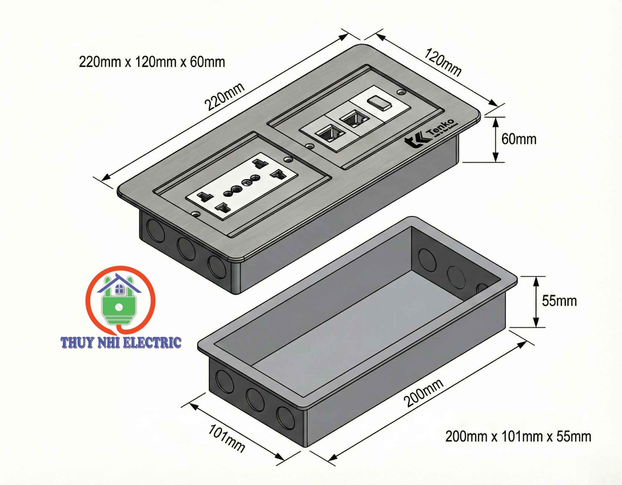 Dòng cao cấp Hộp ổ cắm điện âm sàn Tenko TK-DS-211S01 được ưa chuộng tại: