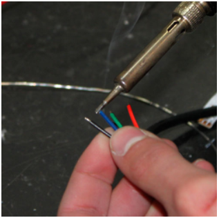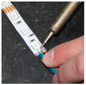 - Chấm chì vào tiếp điểm trên dây đèn led, nhớ làm sạch bằng nhựa thông để tăng tính tiếp xúc nhé.àn dây điện đã chuẩn bị bước trên vào tiếp điểm của dây đèn led