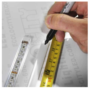- Đặt dây đèn led bên cạnh thanh nhôm và đánh dấu điểm cắt tại nút bịt
