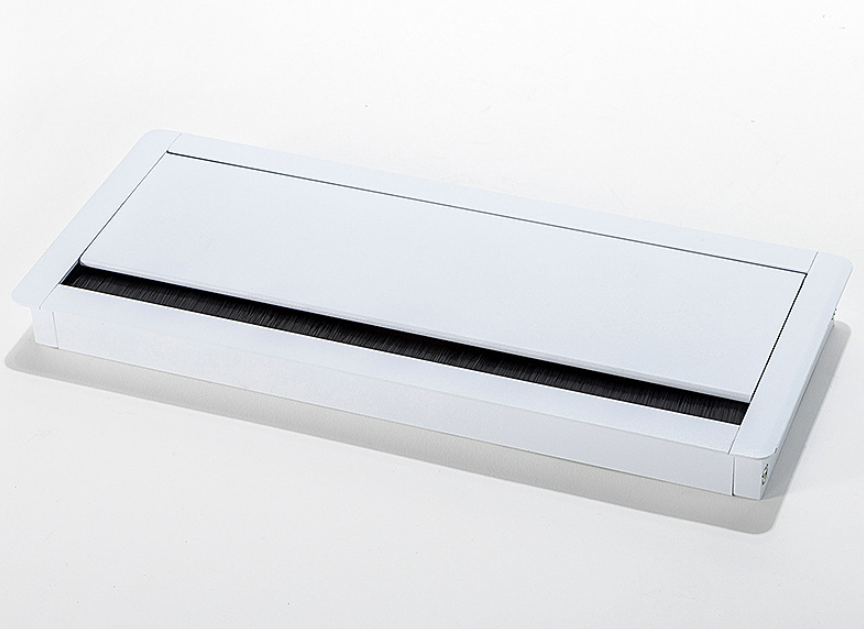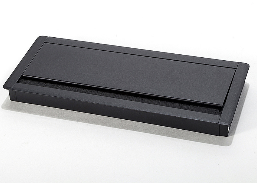 Nắp hộp điện âm bàn giảm chấn 300x127 có nhiệm vụ che khuyết điểm của lỗ uồn dây trên mặt bàn, bên cạnh đó, với kích thước lớn của sản phẩm, người dùng có thể sử dụng cùng máng điện âm bàn để chứa thiết bị điện bên dưới.