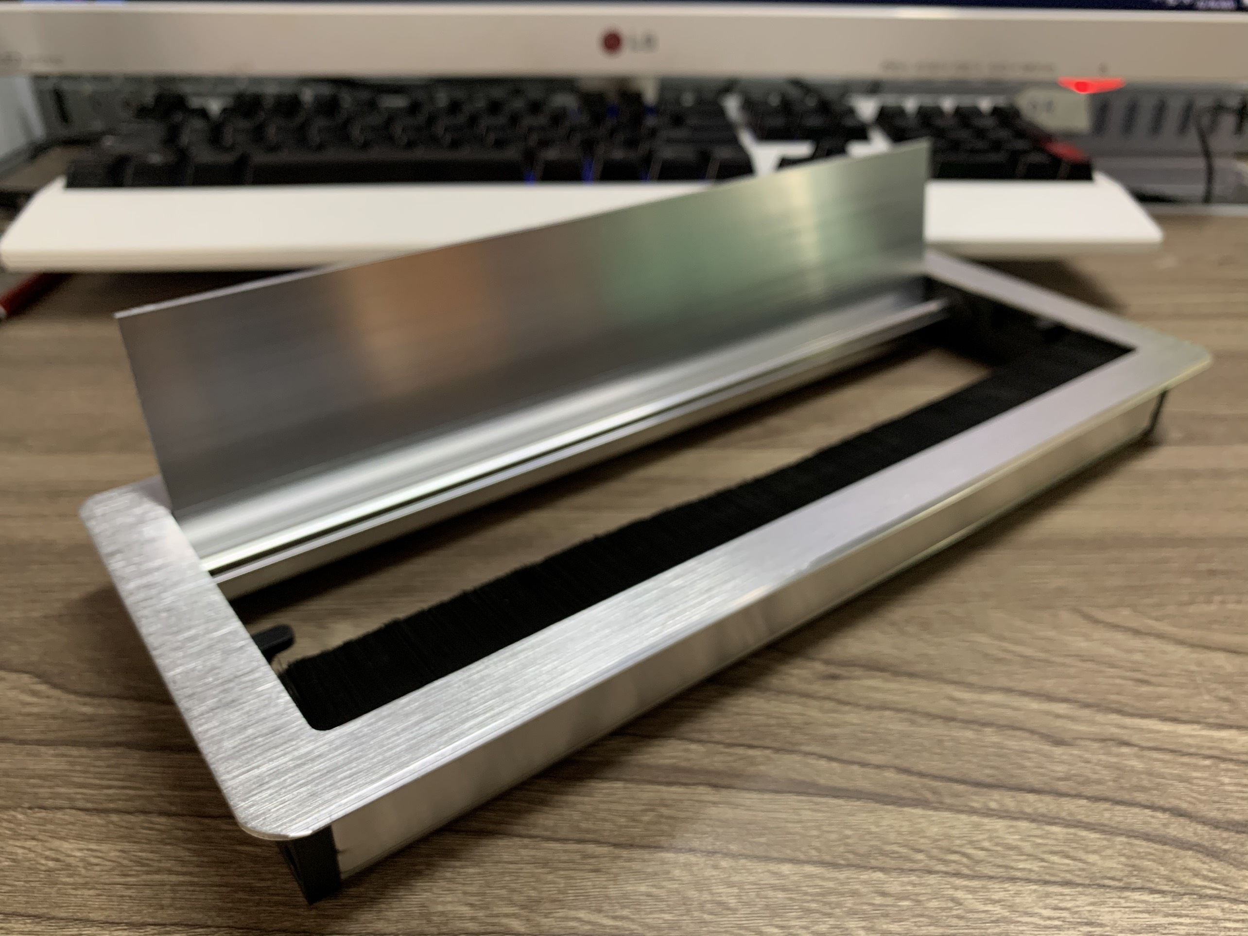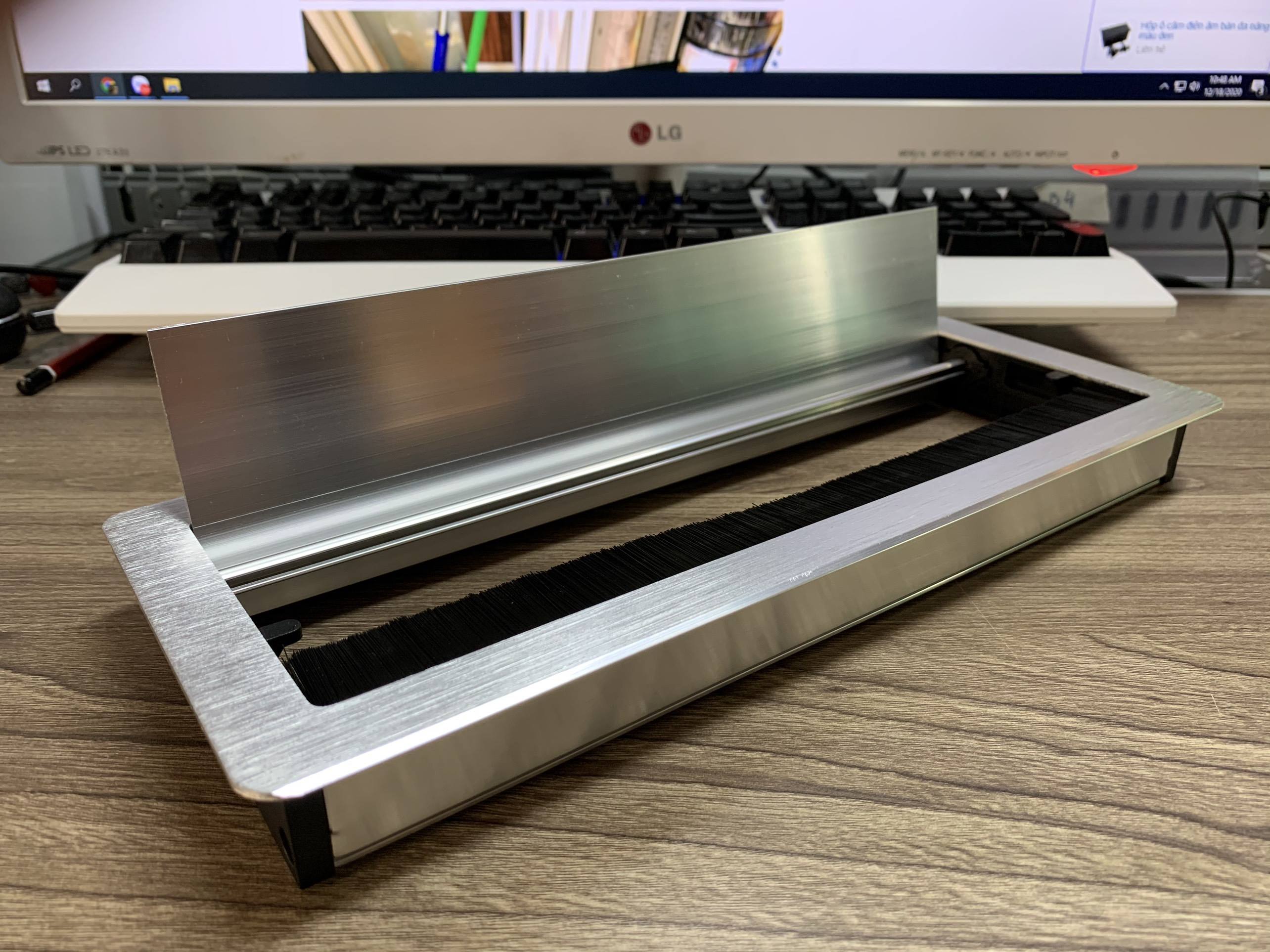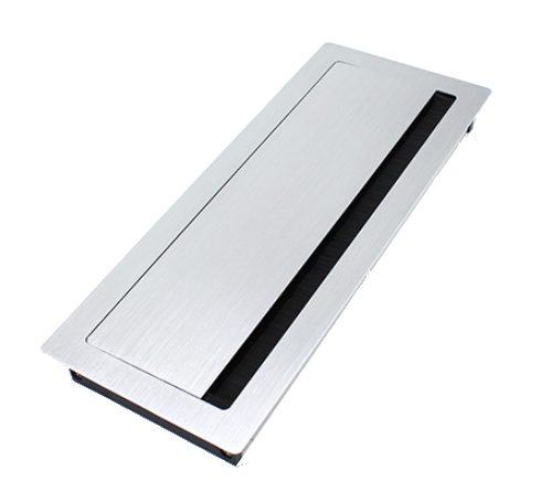 Nắp hộp điện âm bàn nhôm phay xước TNE031-300X120-X là sản phẩm giúp các bạn tạo lỗ khoét trên bàn một cách thẩm mỹ nhất, với mục đích luồn dây điện hoặc làm hộc chứa đồ âm xuống bàn, tạo được không gian chứa đồ hoặc ổ cắm điện mà không làm mất đi diện tích trên bàn làm việc hoặc đơn giản là sử dụng với mục đích sáng tạo một sản phẩm nào đó,…