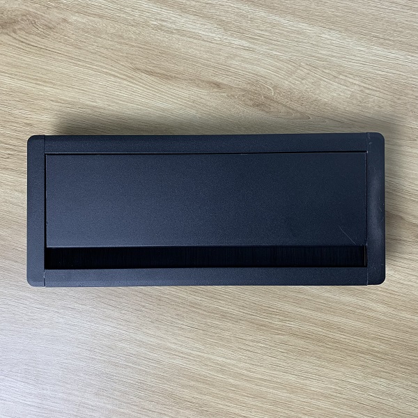 Nắp nhôm âm bàn bản lề xoay TNE01-300X128-Đ giúp người dùng tạo lối tắt luồn dây từ dưới mặt bàn lên một cách thẩm mỹ, với ưu điểm chất liệu nhôm cứng cáp, chắc chắn giúp sản phẩm không bị biến dạng trong quá trình sử dụng.