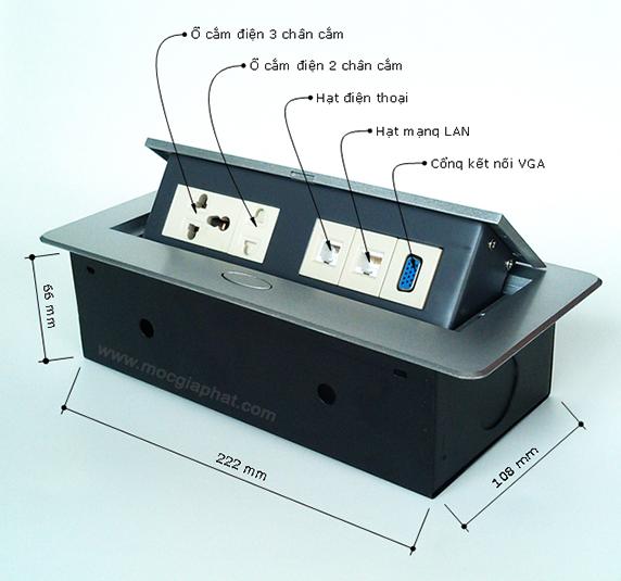 Ổ cắm âm bàn 6 thiết bị bật nắp china là hộp ổ cắm âm bàn có thể chứa tối đa 6 thiết bị như HDMI âm bàn, VGA âm bàn, USB âm bàn, ổ mạng, ổ cắm thoại, ổ cắm điện,...