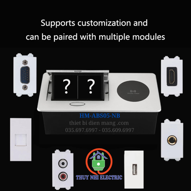 Điểm khác biệt lớn nhất của ổ cắm âm bàn Homin so với các sản phẩm khác trên thị trường chính là khả năng tùy chỉnh hạt chức năng. Thay vì bị giới hạn với các cổng kết nối cố định, bạn có thể tự do lựa chọn và sắp xếp các module chức năng khác nhau, bao gồm: