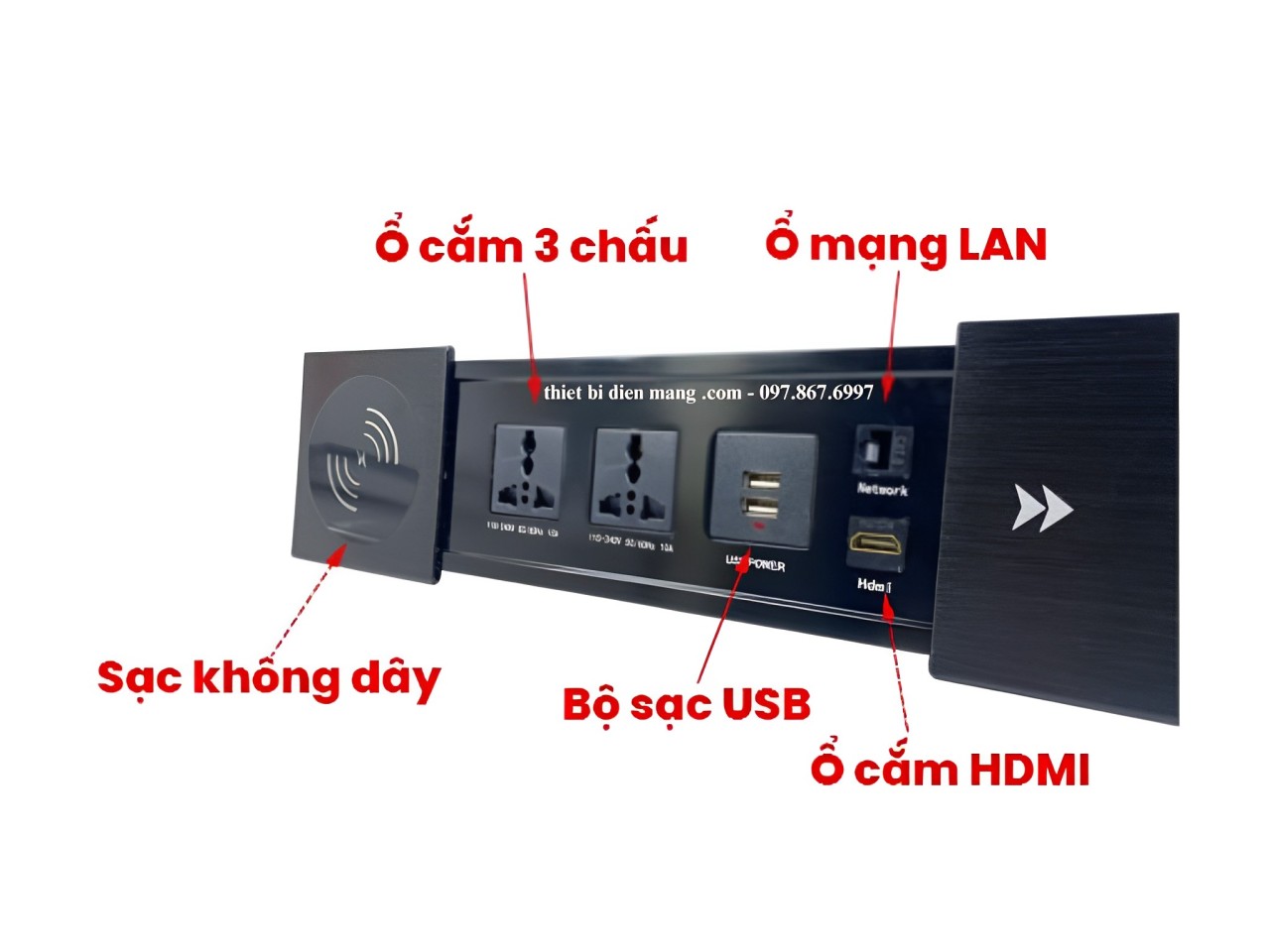 Hộp ổ điện âm bàn Tenko này, bạn không phải lo lắng về việc không có đủ các loại ổ sạc cho từng thiết bị trong trong nhà ở. Điều này là hộp ổ cắm âm bàn cung cấp 5 cổng sạc khác nhau để bạn có thể kết nối dây nguồn pc trực tiếp. Hoặc đặt điện thoại di động của bạn trên bộ sạc không dây QI tiện lợi, nhanh chóng.