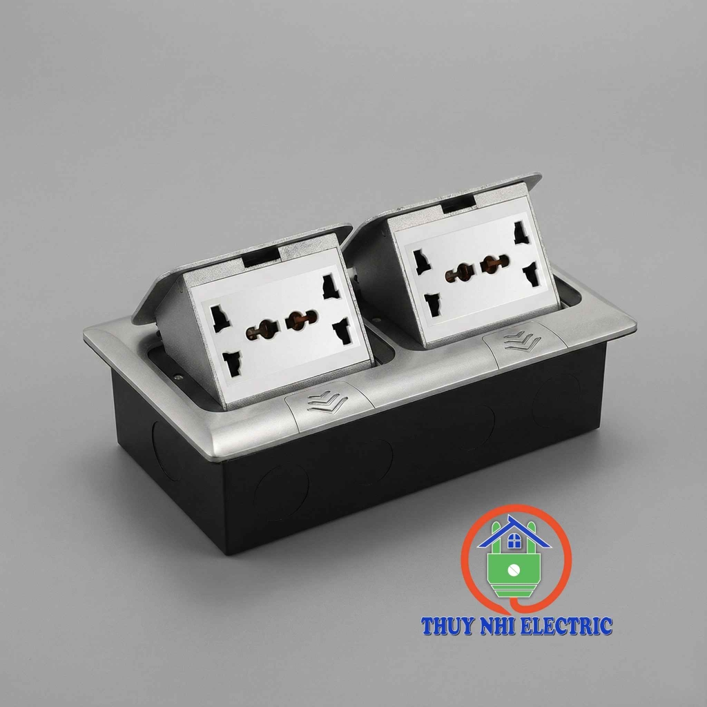 Giải pháp tối ưu nhất chính là ổ cắm âm sàn đôi HM-AS2205-TB. Với kích thước lớn gấp đôi và khả năng tích hợp 4 ổ cắm 3 chấu, sản phẩm này cung cấp nguồn điện dồi dào cho cả một cụm bàn làm việc, được bao bọc bởi lớp vỏ thép màu Bạc sang trọng.