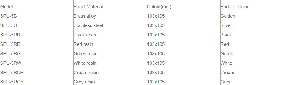Một số model của dòng SPU-5 và kích thước sản phẩm: