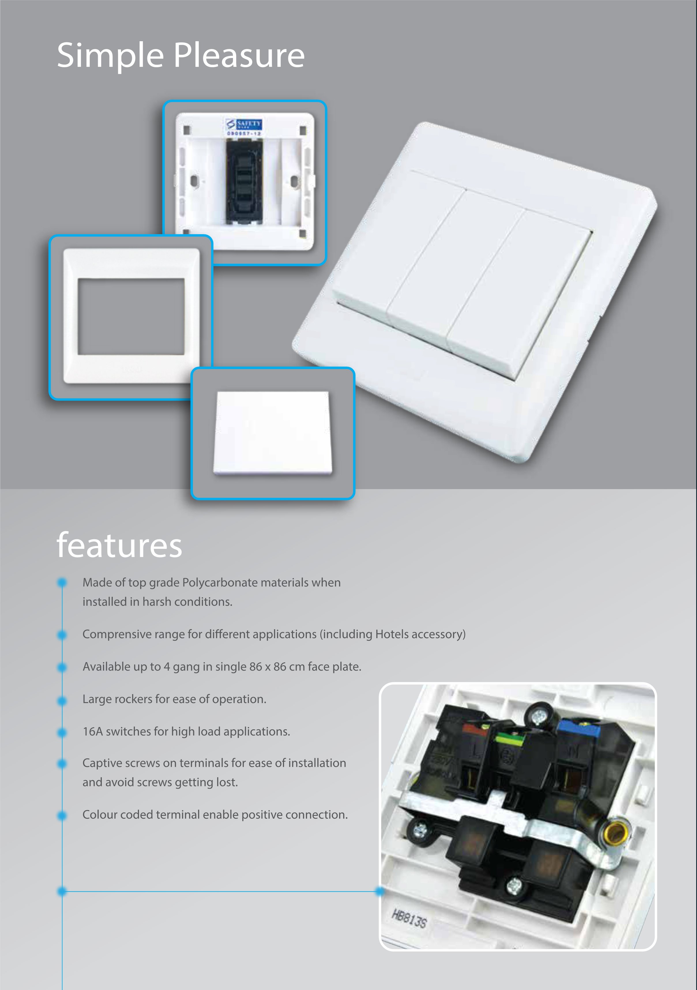 Ổ cắm có công tắc T&J HB8318SUSB với cấu trúc 3 lớp an toàn và dễ dàng trong lắp đặt thay thế.