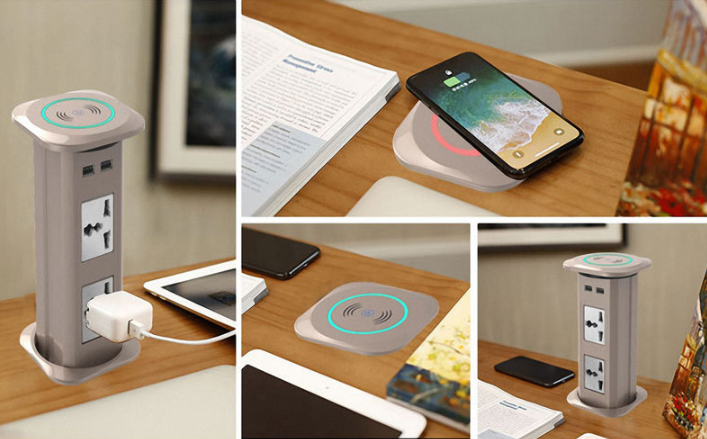Nắm bắt được sự thuận tiện của công nghệ sạc không dây, nhà sản xuất đa ưu ái tích hợp trên ổ cắm điện âm bàn đa năng BJQ-P1 Với mục đích chính vẫn là loại bỏ hoàn toàn dây kết nối rườm rà trên mặt bàn, với thao tác đơn giản người dùng chỉ cần đặt thiết bị lên trên bề mặt được tích hợp sạc không dây và nó sẽ bắt đầu phần việc còn lại cua mình.