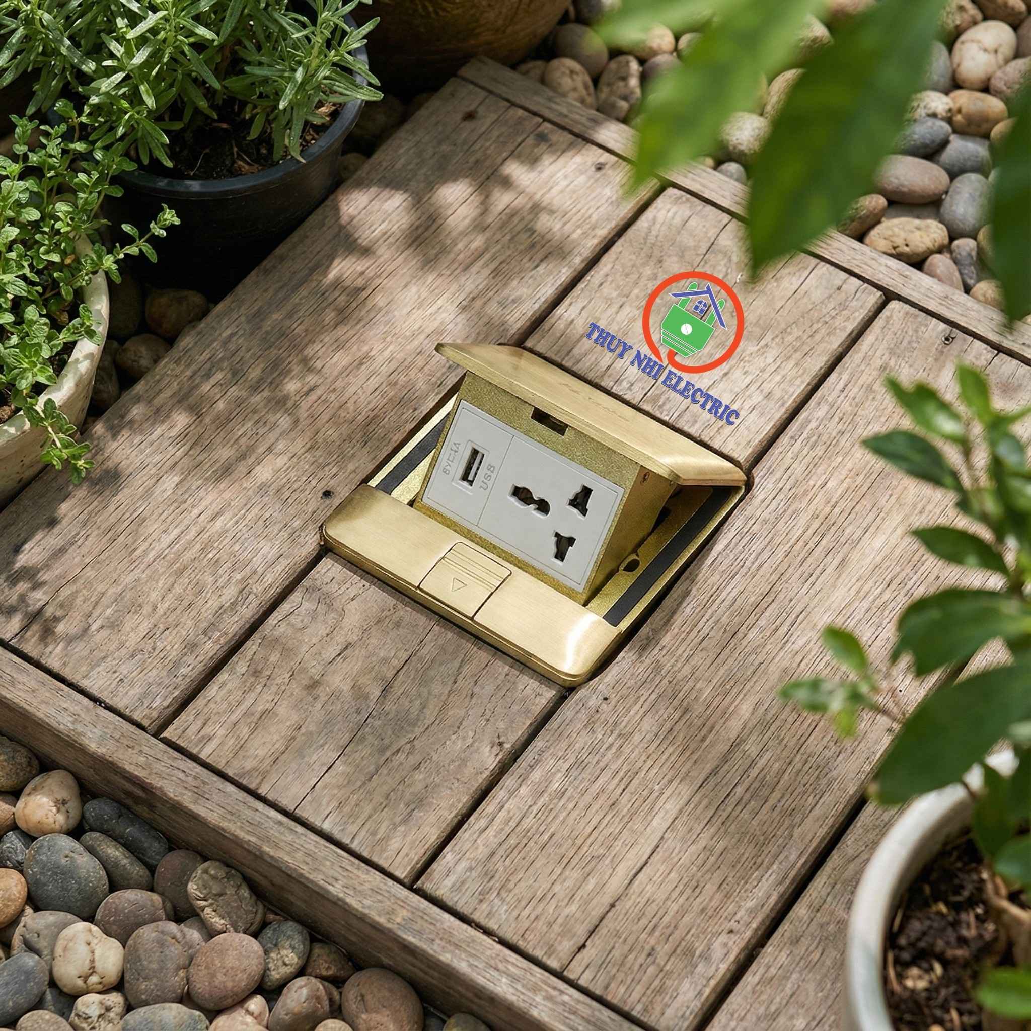 Bộ ổ cắm điện âm sàn Tenko TK-J05-11 giải quyết triệt để vấn đề này. Với lớp vỏ Đồng nguyên khối màu vàng vương giả và tích hợp sẵn Cổng sạc USB, sản phẩm mang lại trải nghiệm sạc pin hiện đại và tinh tế ngay dưới chân bạn.