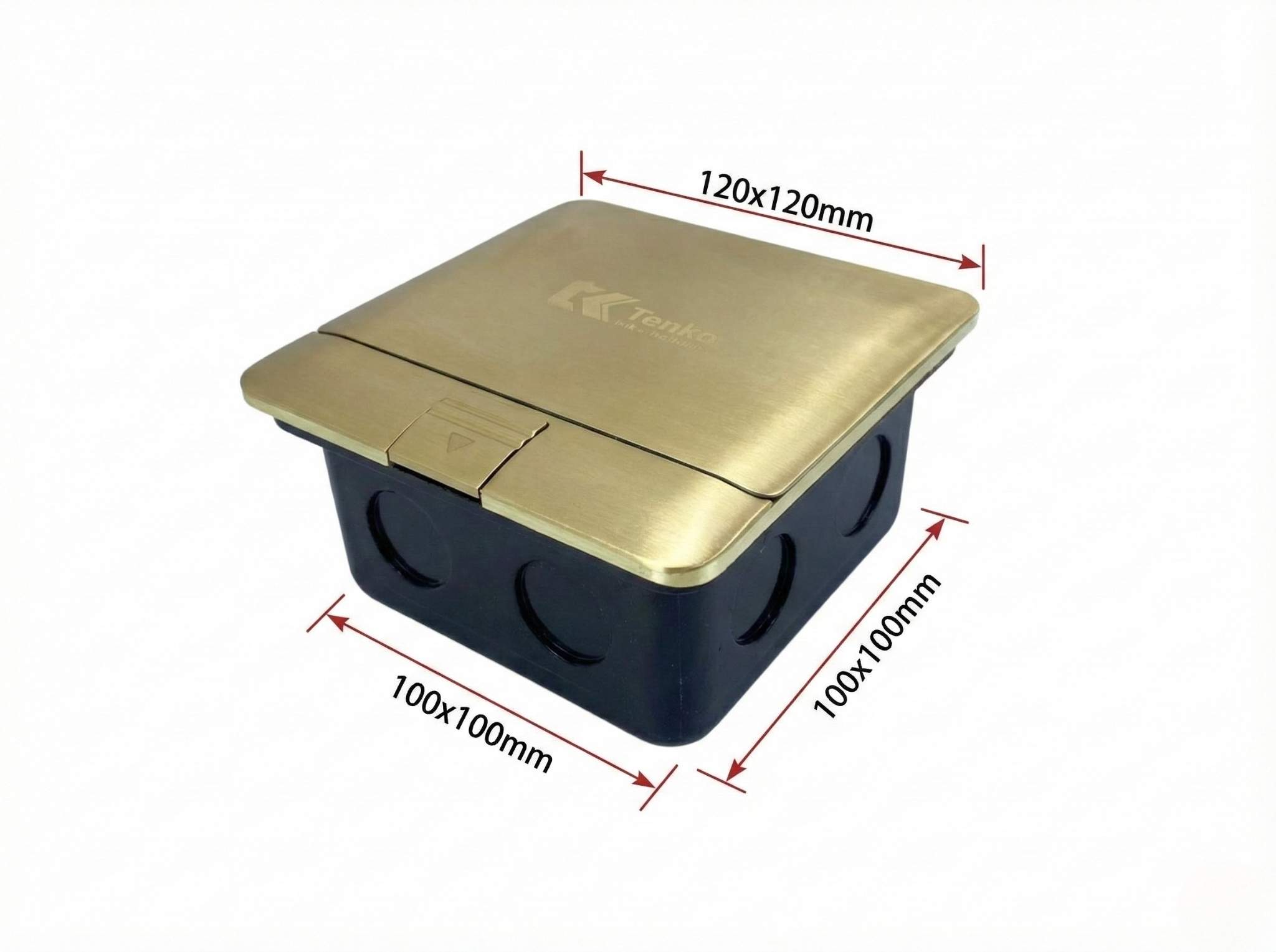 Kích thước chuẩn: Mặt nắp 120x120mm và đế âm 100x100mm là kích thước tiêu chuẩn quốc tế, giúp việc thi công khoét lỗ sàn hoặc thay thế các ổ cắm cũ trở nên dễ dàng.