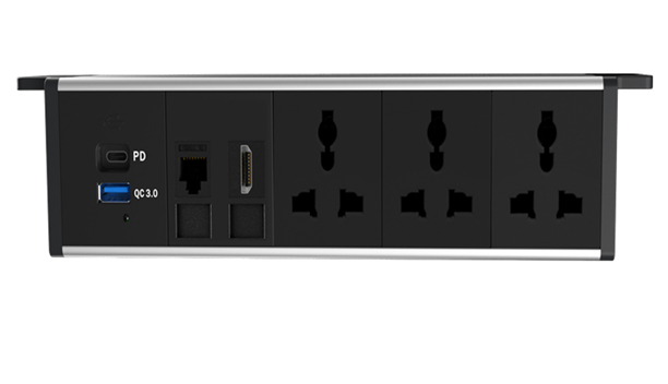 Số lượng ổ cắm: gồm 3 ổ cắm điện Universal, 1 HDMI 1, LAN cat6, 1 USB- A(USB 3.0), 1 USB-C 30W hỗ trợ Công nghệ sạc nhanh