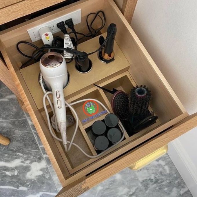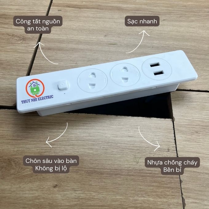 Ổ cắm điện âm bàn được lắp đặt trực tiếp vào mặt bàn, vách tường, ngăn tủ, tủ bếp, bàn trang điểm giúp tiết kiệm tối đa diện tích, tạo nên không gian làm việc, sinh hoạt thông thoáng và ngăn nắp.