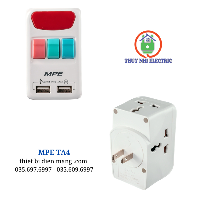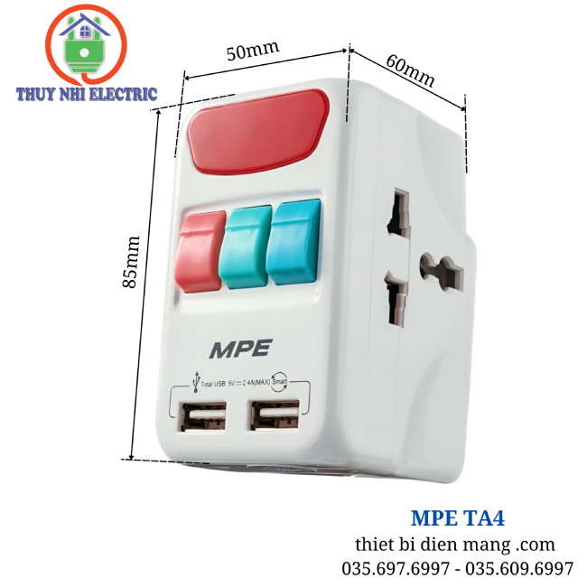 Ổ Cắm Du Lịch Đa Năng Tích Hợp 2 Cổng USB MPE TA4 – Sự Lựa Chọn Tiện Lợi và An Toàn
