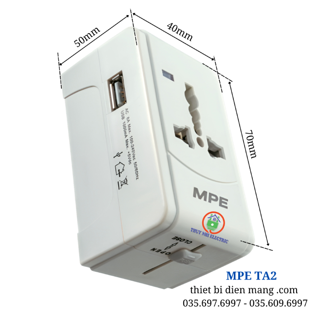 - Tên sản phẩm: Ổ cắm du lịch đa năng tích hợp cổng USB MPE TA2