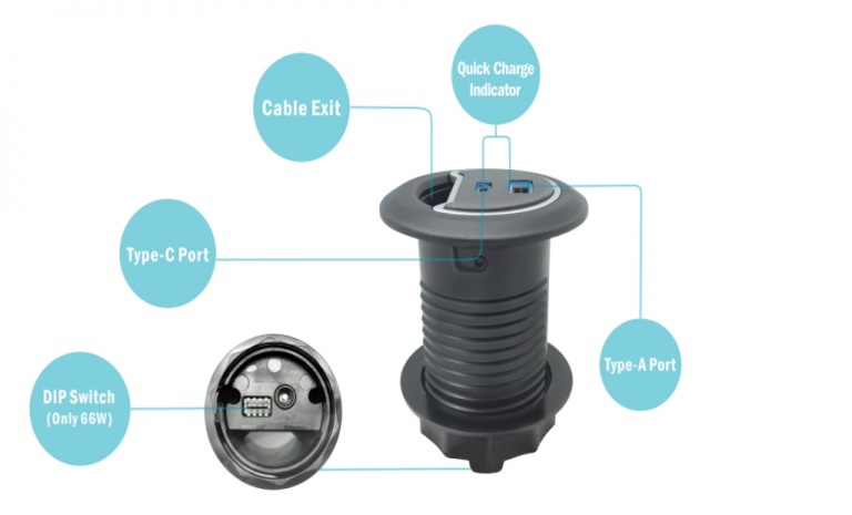 Hỗ trợ PD /QD protocol trong việc tối ưu hóa sạc điện thoại Hỗ trợ đồng thời sạc 2 thiết bị Dây cáp luồn phía dưới giúp cho bàn làm việc trở nên gọn gàng hơn