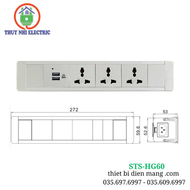 Thông số Kỹ Thuật Ổ điện lắp gầm bàn sinoamigo STS-HG60 màu trắng