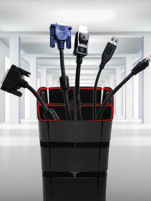 Với lối kiến trúc không gian mở của các văn phòng hiện nay việc giấu dây điện của các thiết bị văn phòng trở nên cần thiết, ống luồn dây điện dạng khớp chân bàn làm việc là lựa chọn hợp lý cho nhà đầu tư bởi tính tiện dụng của thiết bị, dễ dàng lắp đặt mà giá thành lại rẻ hơn so với các biện pháp thi công khác.Kết hợp cùng Hộp điện âm bàn và ổ cắm âm sàn tạo nên sự gọn gàn và sang trọng cho không gian làm việc.