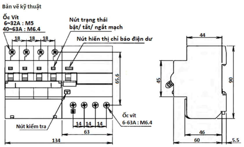 | Trọng Lượng (kg) | 6A-32A - 0.2kg 40A-63A-0.23kg |